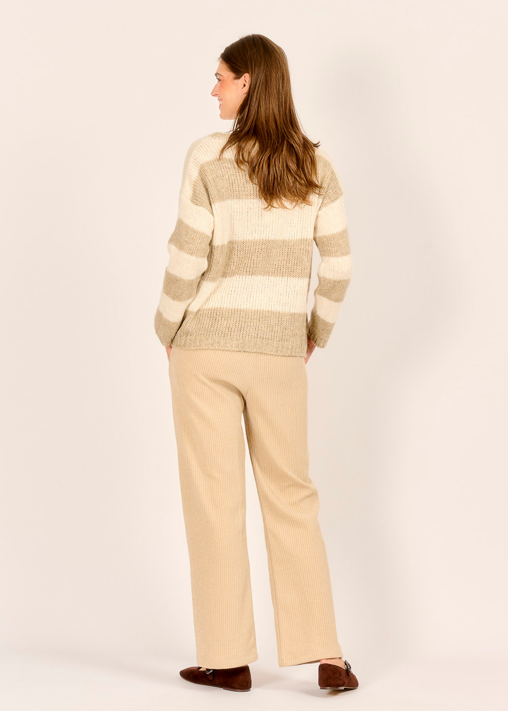 Unsere beige Cord-Pantalone vereint klassischen Charme mit modernem Komfort und verleiht jedem Outfit eine subtile, edle Note. Der weiche Cordstoff schmeichelt der Figur, während der zeitlose Schnitt vielseitige Stylingmöglichkeiten bietet – von casual bis chic. Ein Must-have für alle, die Eleganz und Gemütlichkeit mühelos kombinieren möchten.