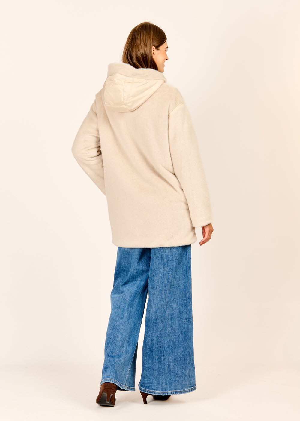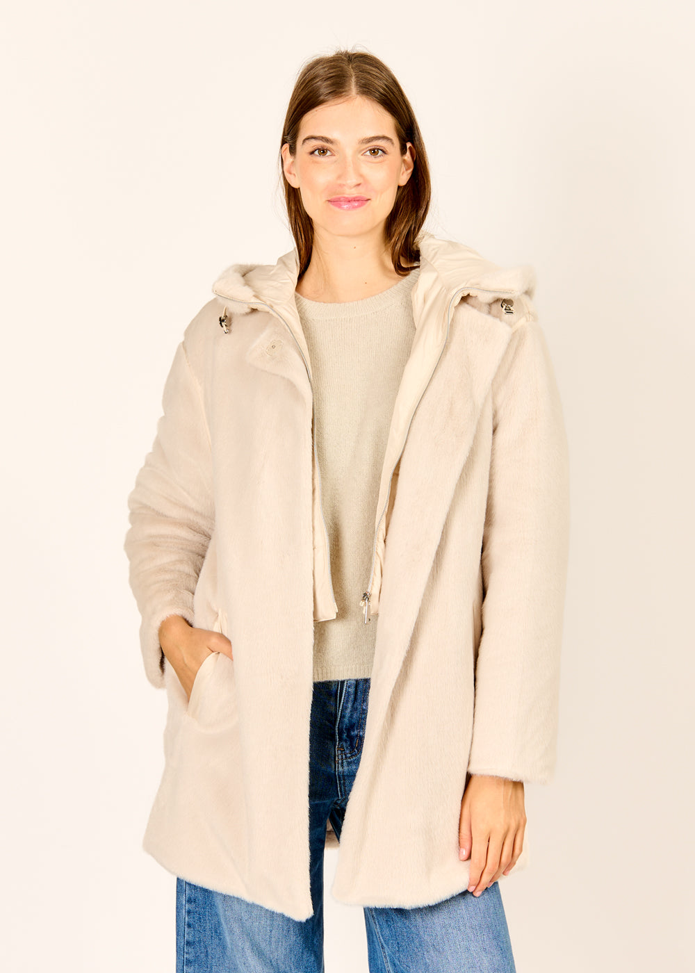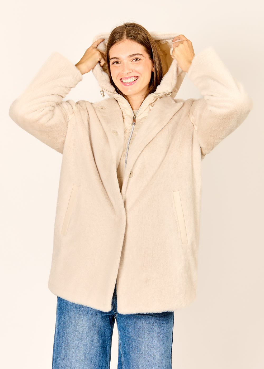 Setze ein stilvolles Statement mit unserem edlen 2-in-1-Parka in der Farbe Panna. Der elegante Materialmix mit einer integrierten, herausnehmbaren Steppweste bietet dir gleich zwei Looks in einem und sorgt für eine besonders coole Optik. Der Mantel ist ein absolutes Fashion-Highlight, das dich nicht nur wärmt, sondern auch mit seiner edlen Farbe und dem raffinierten Design begeistert.