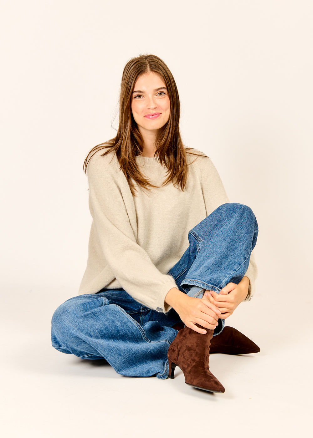 Verliebe dich in unseren gemütlichen Pullover in der edlen Farbe Argento. Das weiche, flauschige Material sorgt für ein wunderbar angenehmes Tragegefühl, während der kleine Knopf am Ärmel ein dezentes und raffiniertes Detail setzt. Mit seinem zeitlosen Design ist dieser Pullover ein vielseitiger Begleiter, der sich perfekt zu Jeans und Röcken kombinieren lässt.