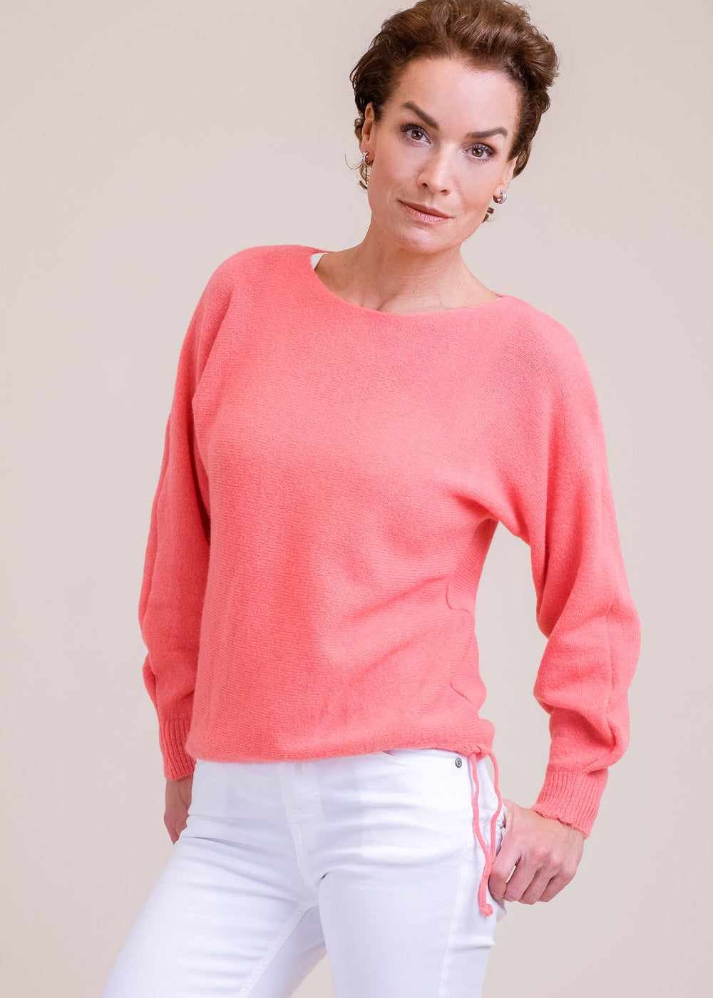 Strickpullover mit U-Bootausschnitt in einem lässigen Schnitt. Abschlussbündchen mit regulierbaren Kordelzug an der Seite. Rippenbündchen an den Ärmeln. Das Unifarbende Design schafft einen lässigen und kombinationsstarken Allrounder. Länge:68cm.