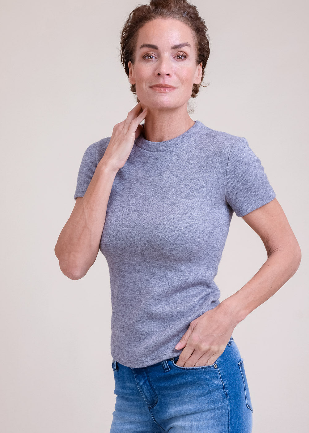 Hoch geschlossenes Halbarmshirt aus einem Kuschelweichen Material. Schmal geschnitten. Ein stilvolles Basic. Länge:58cm.
