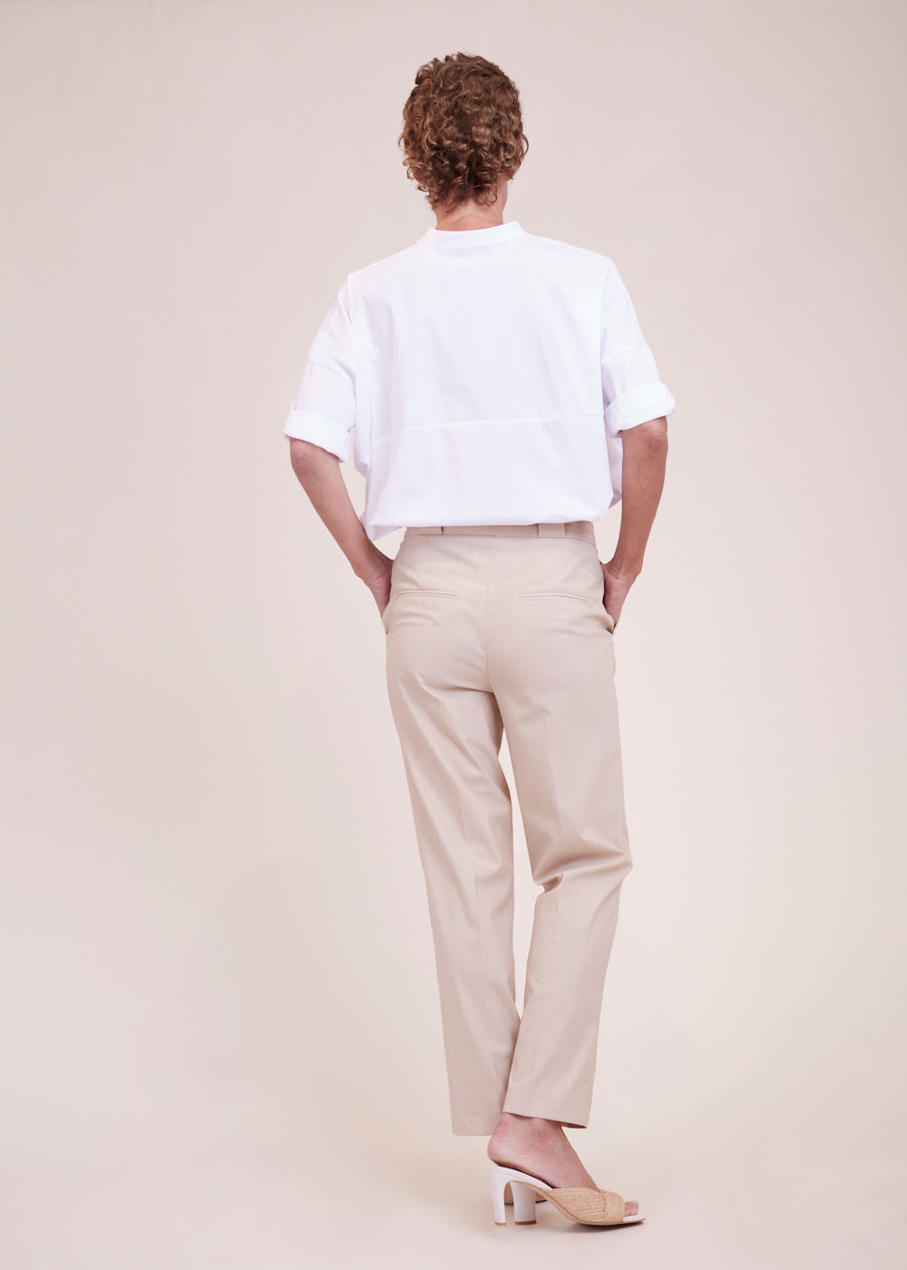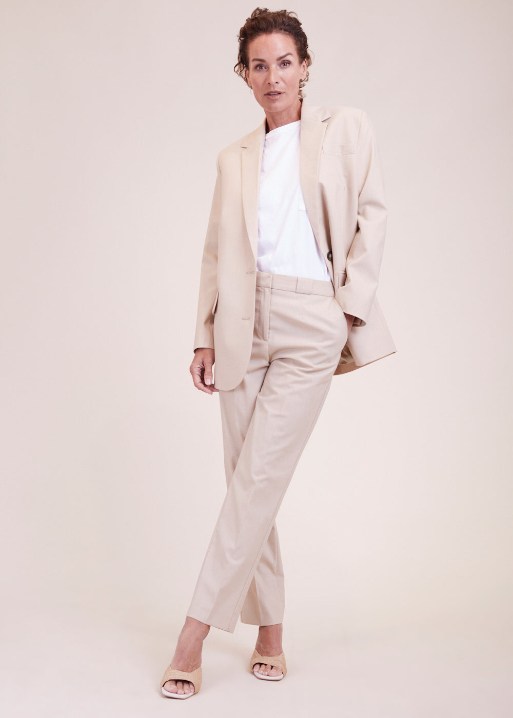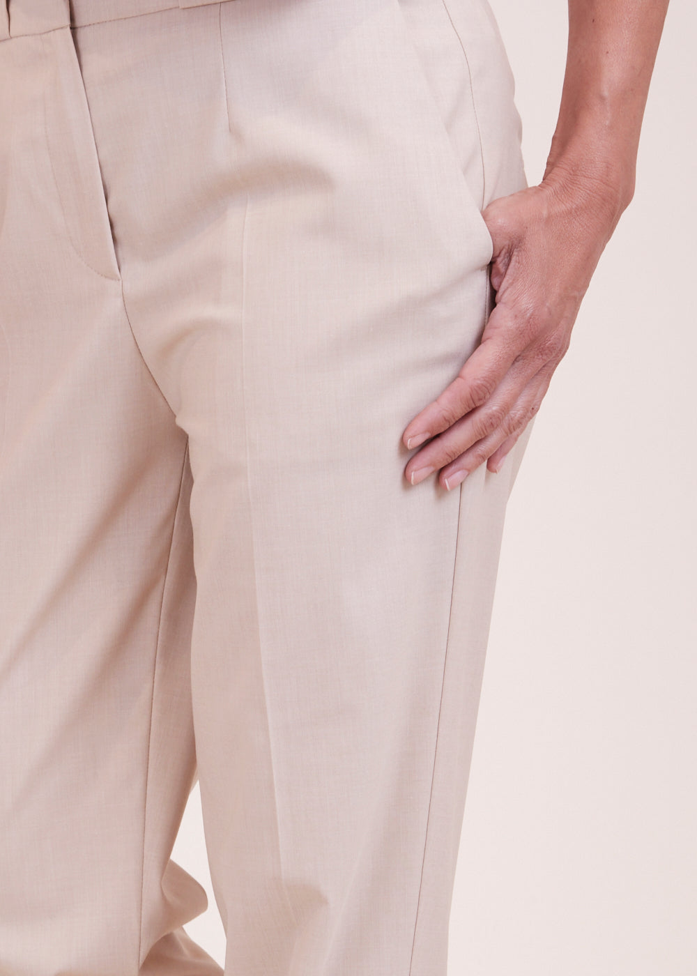 Tolle Bundfaltenhose mit geradem Bein. Die Hose lässt sich durch einen Reißverschluss und zwei Metallschieber verschließen und hat seitliche Eingriffstaschen, soviel Paspeltaschen auf dem Gesäß. Besonders toll in Kombination mit dem passenden Blazer und einen weißen Bluse. Die Hose fällt etwas größer aus.