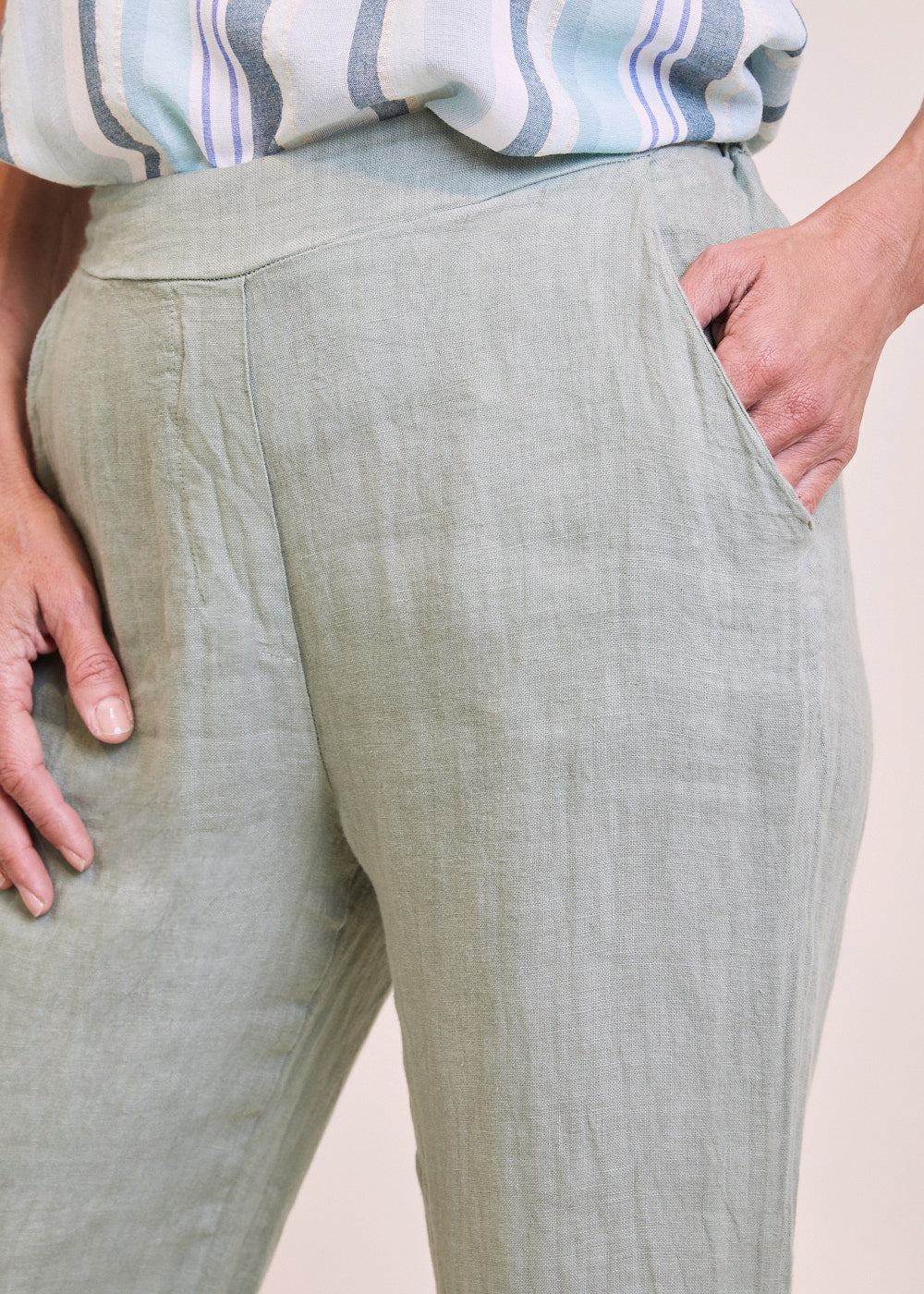Ein Klassiker aus Leinen. Diese Hose überzeugt mit ihrem bewährten Gesamtkonzept aus Material und Style. Sie ist lässig in der Silhouette geschnitten und darüber hinaus noch kühlend auf der Haut durch ihr reines Leinen Material. Damit sind sie auch an heißen Tagen bestens versorgt. Durch ihren Gummibund hat sie darüber hinaus noch einen sehr angenehmen Tragekomfort. Mit seitlichen Eingriffstaschen.