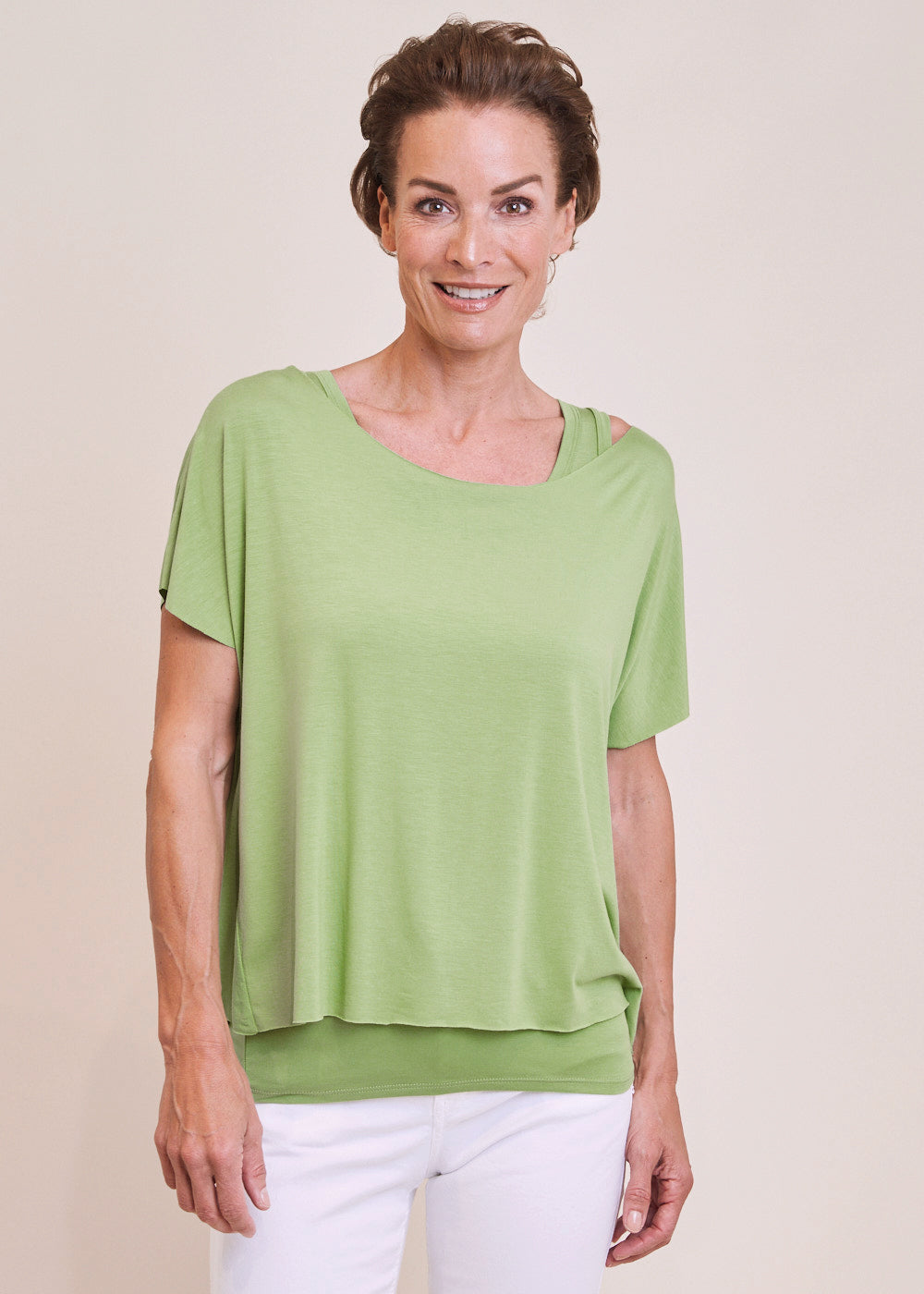 Unser Shirt-Set in der Trendfarbe Verde ist nicht nur ein toller Kombinationsartikel, sondern verleiht deinem auch Outfit auch einen sportiven, modernen Touch. Das Set, bestehend aus einem Top und einem Obershirt, schmiegt sich fließend um deinen Oberkörper und sorgt für ein angenehmes Tragegefühl auf der Haut.
