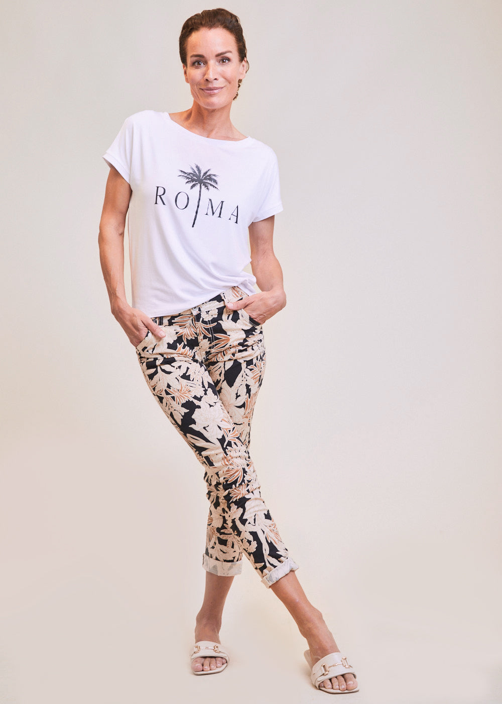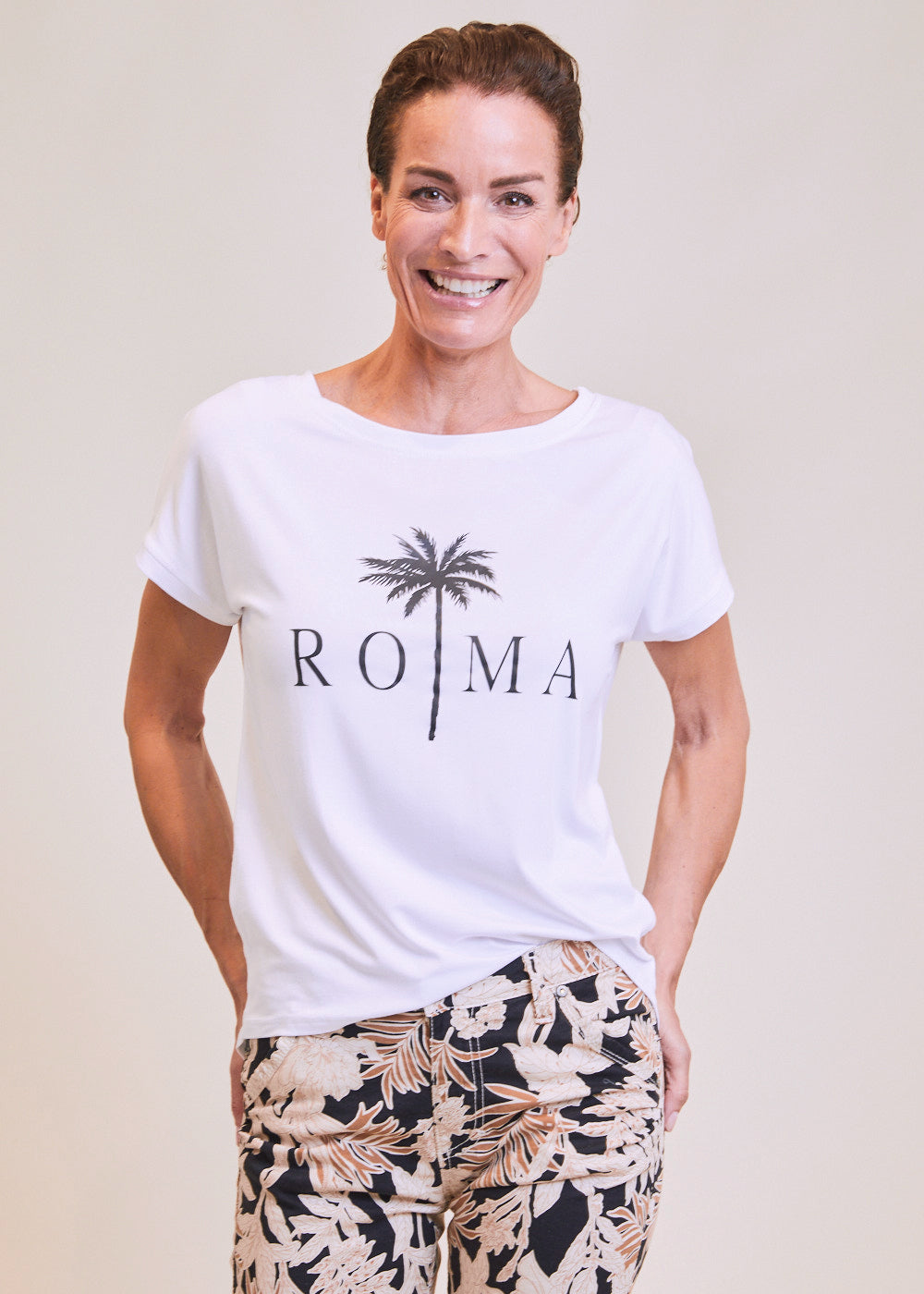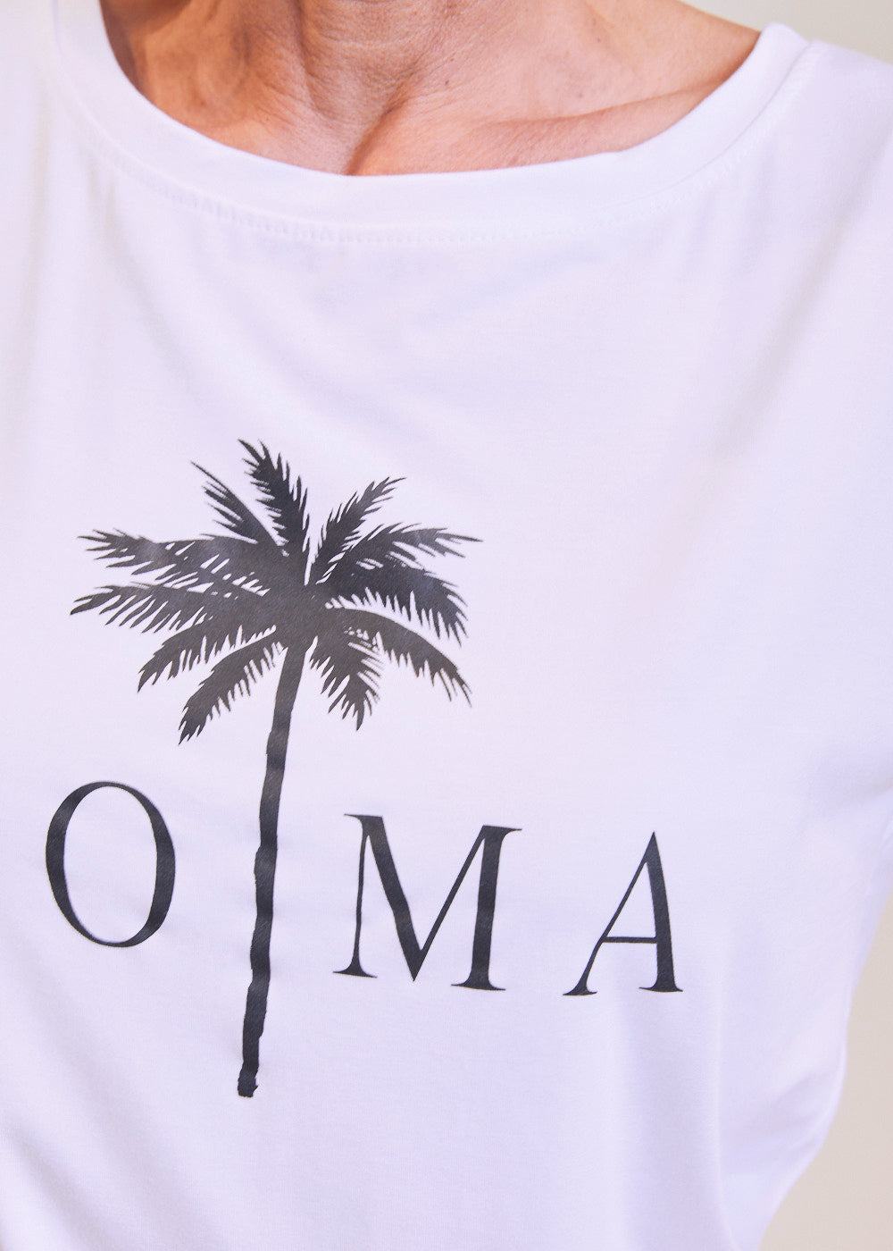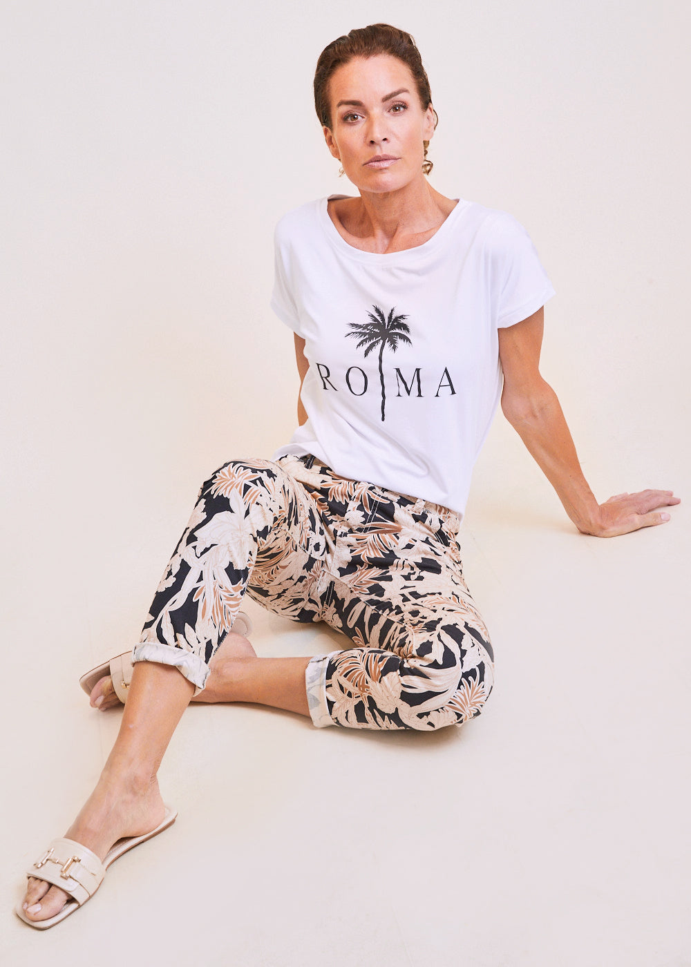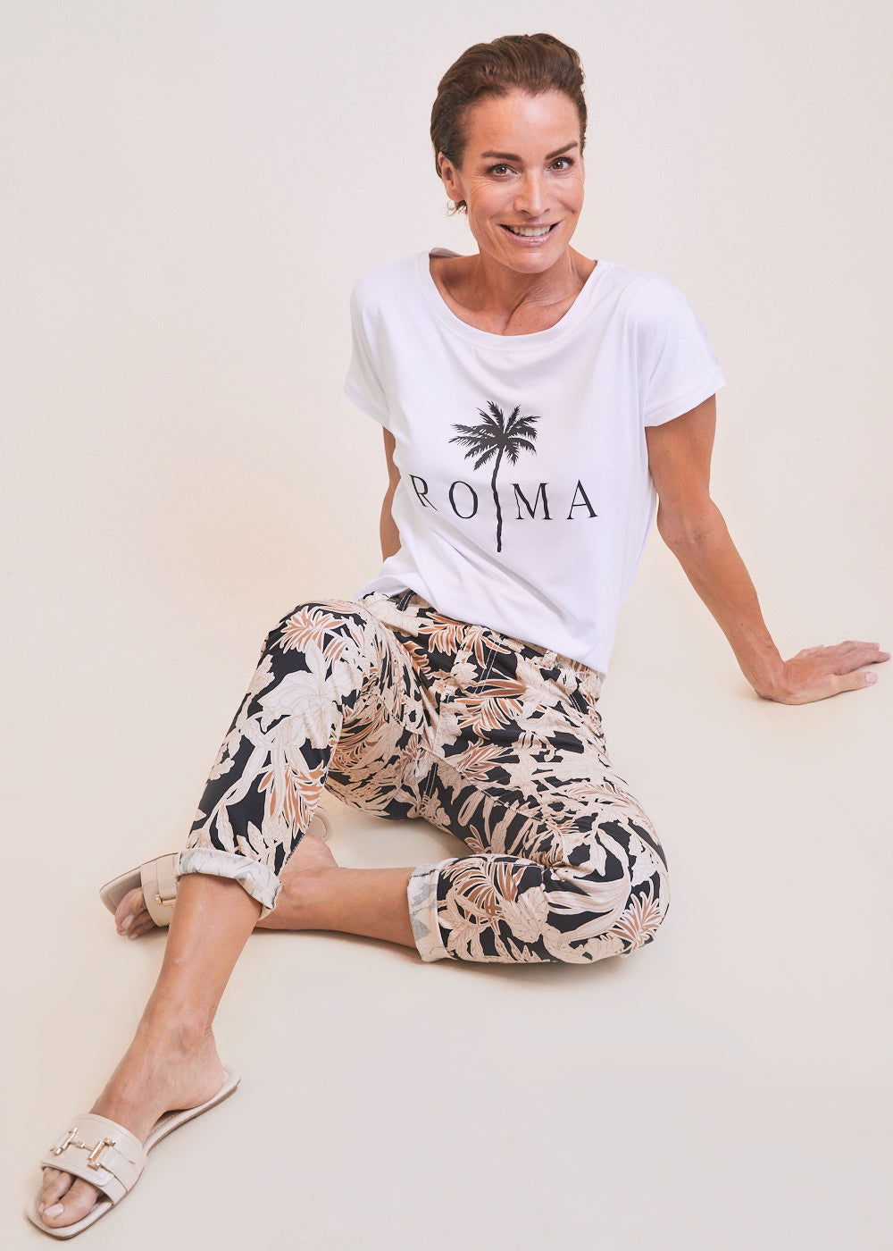 Rundhalsshirt mit einem sommerlichen Druck. Es hat einen kurzen Arm und einen besonders angenehmen Tragekomfort. Perfekt in der Kombination mit unseren Please Shorts. Einfach genial!