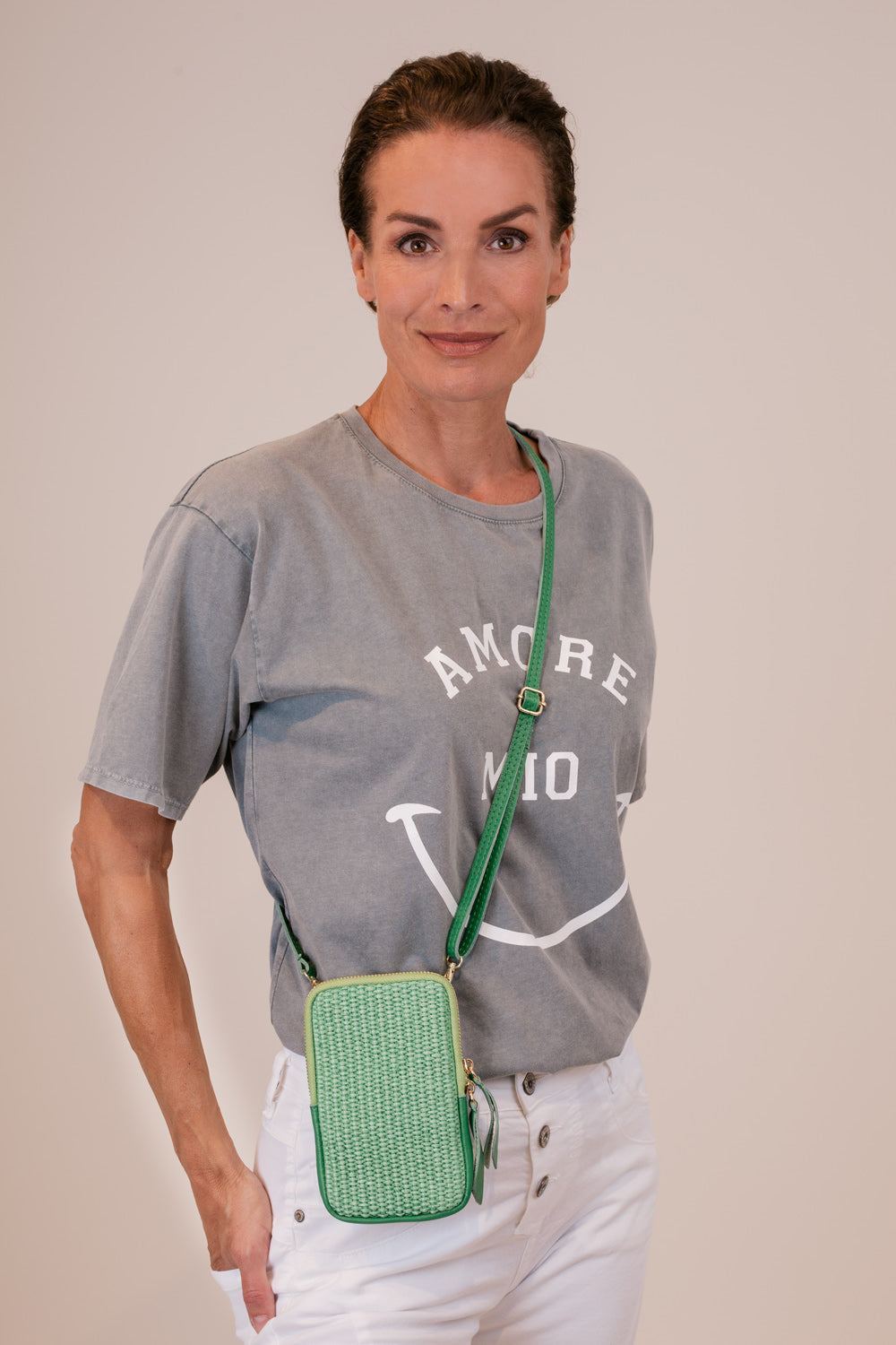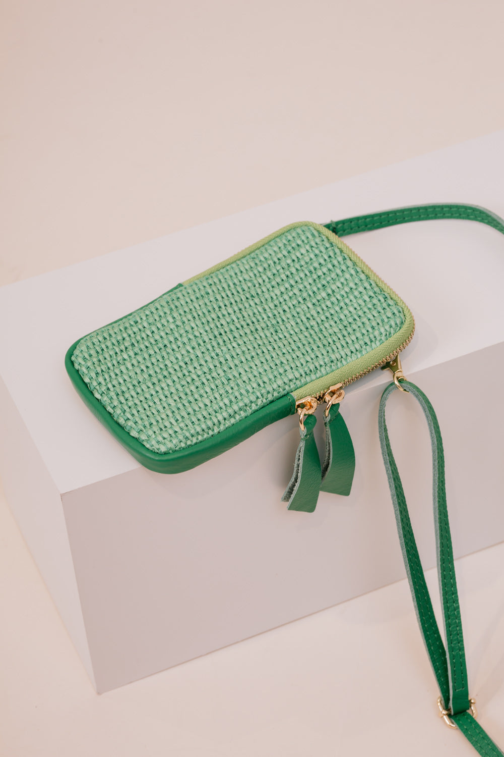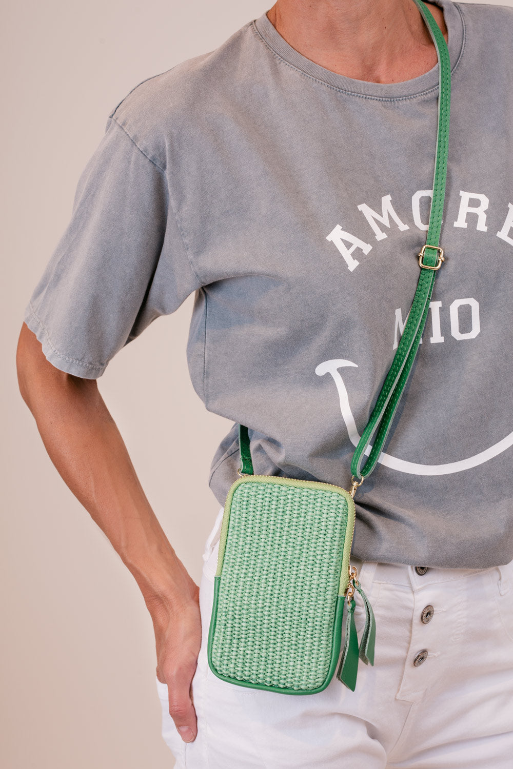Praktische Handytasche aus Bask mit Umhängegurt und Reißverschluss.