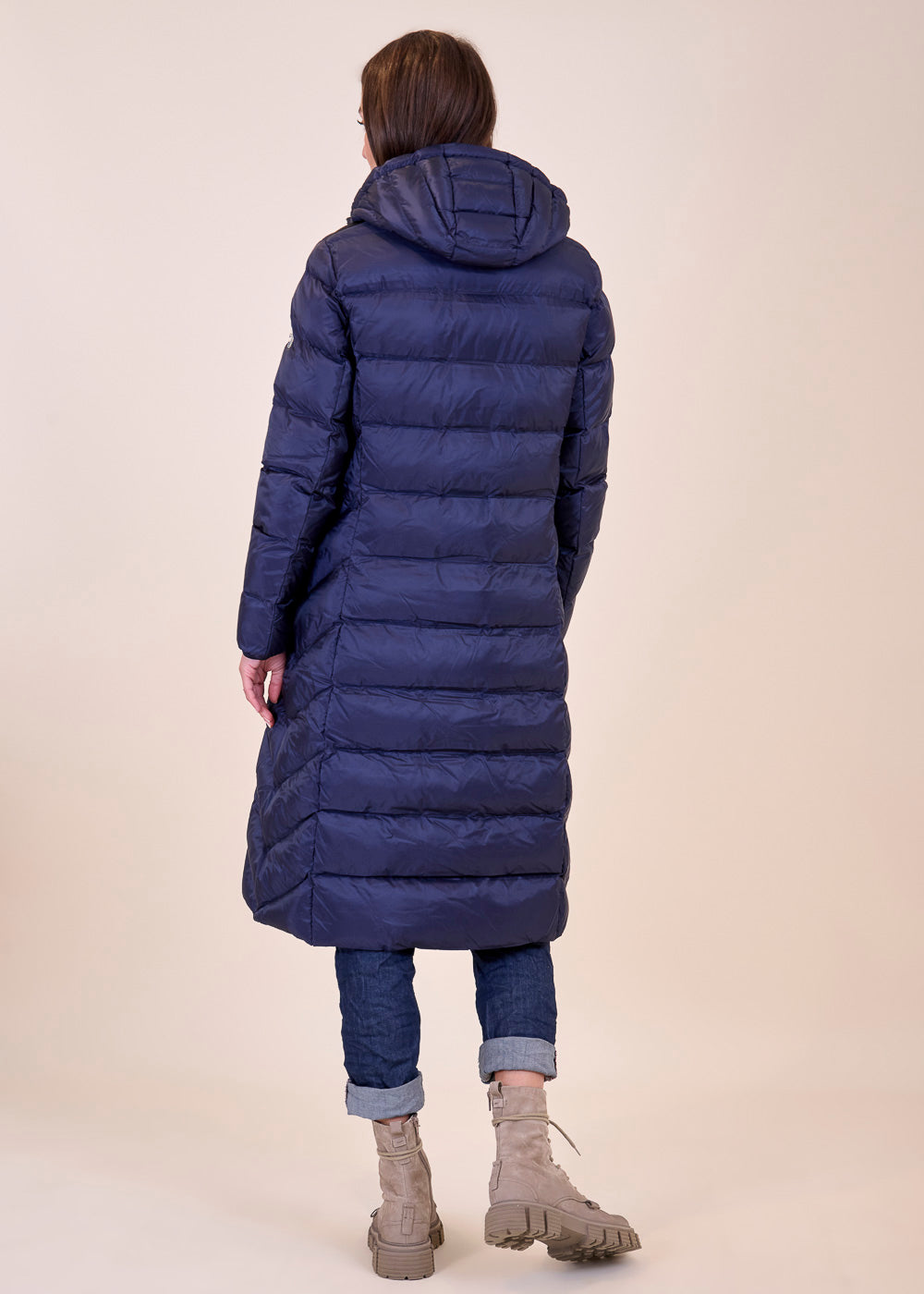 Taillierte Steppjacke mit hochschließenden Kragen. Sie hat eine Kapuze mit Tunnelzug und ist durch einen Zwei-Wege-Reißverschluss verschließbar. Die seitlichen Eingriffstaschen sind mit einem nahtfeinem Reißverschluss versehen. Durch seine Teflon EcoElite-Beschichtung™ ist die Steppjacke Wasser- und schmutzabweisend.