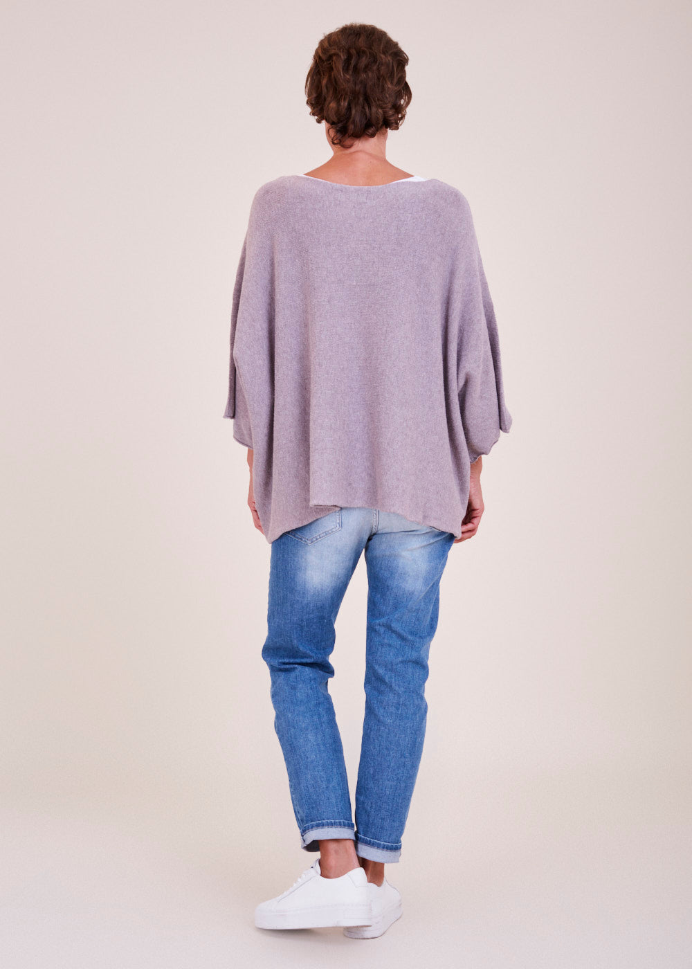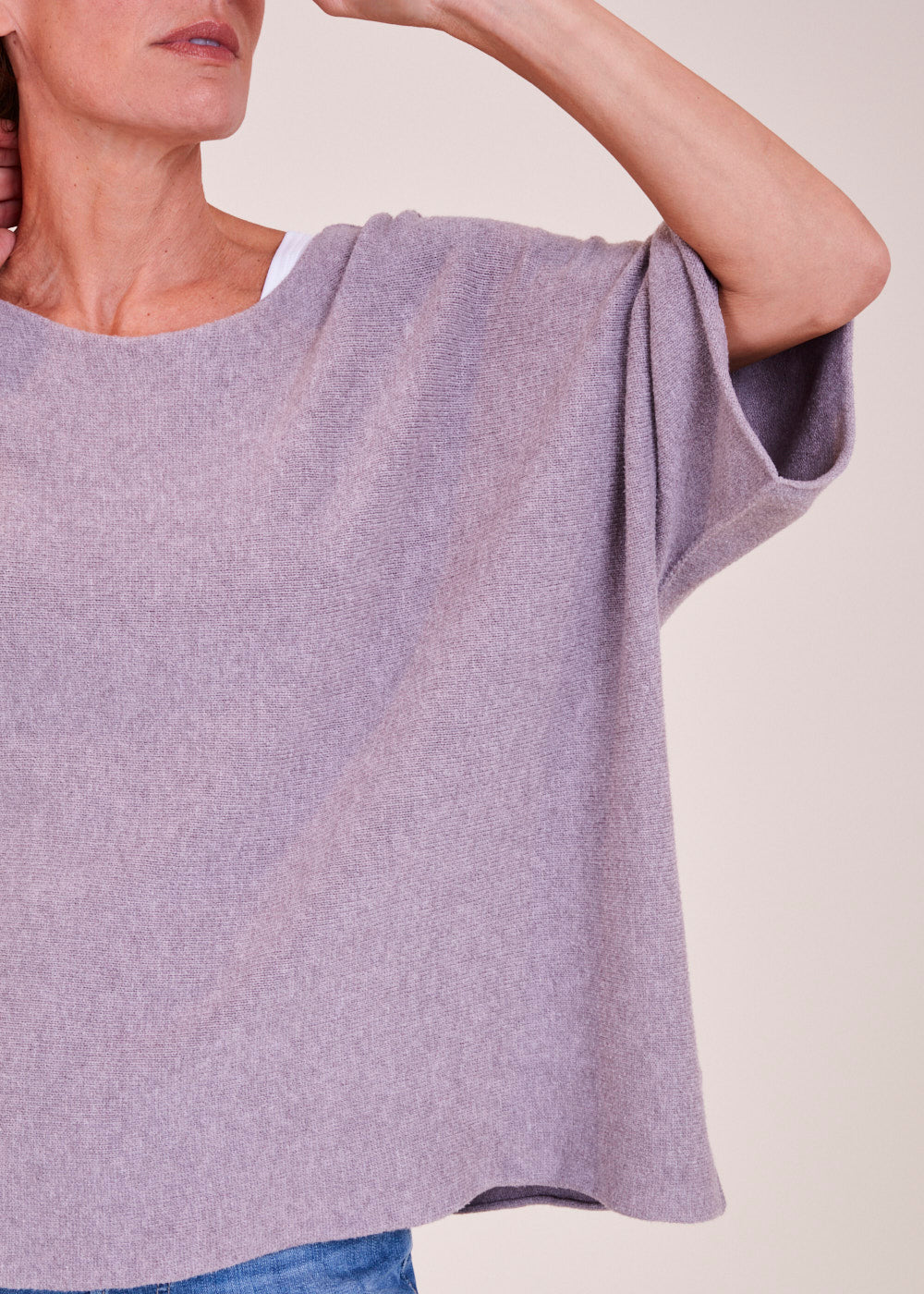 Lässig geschnittener Pullover mit einem dreiviertel Arm. Er hat einen kastenförmigen Schnitt und fällt dabei luftig leicht. Ein besonderer Pullover mit vielseitigen Kombinationsmöglichkeiten.