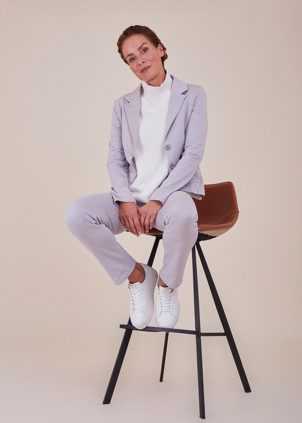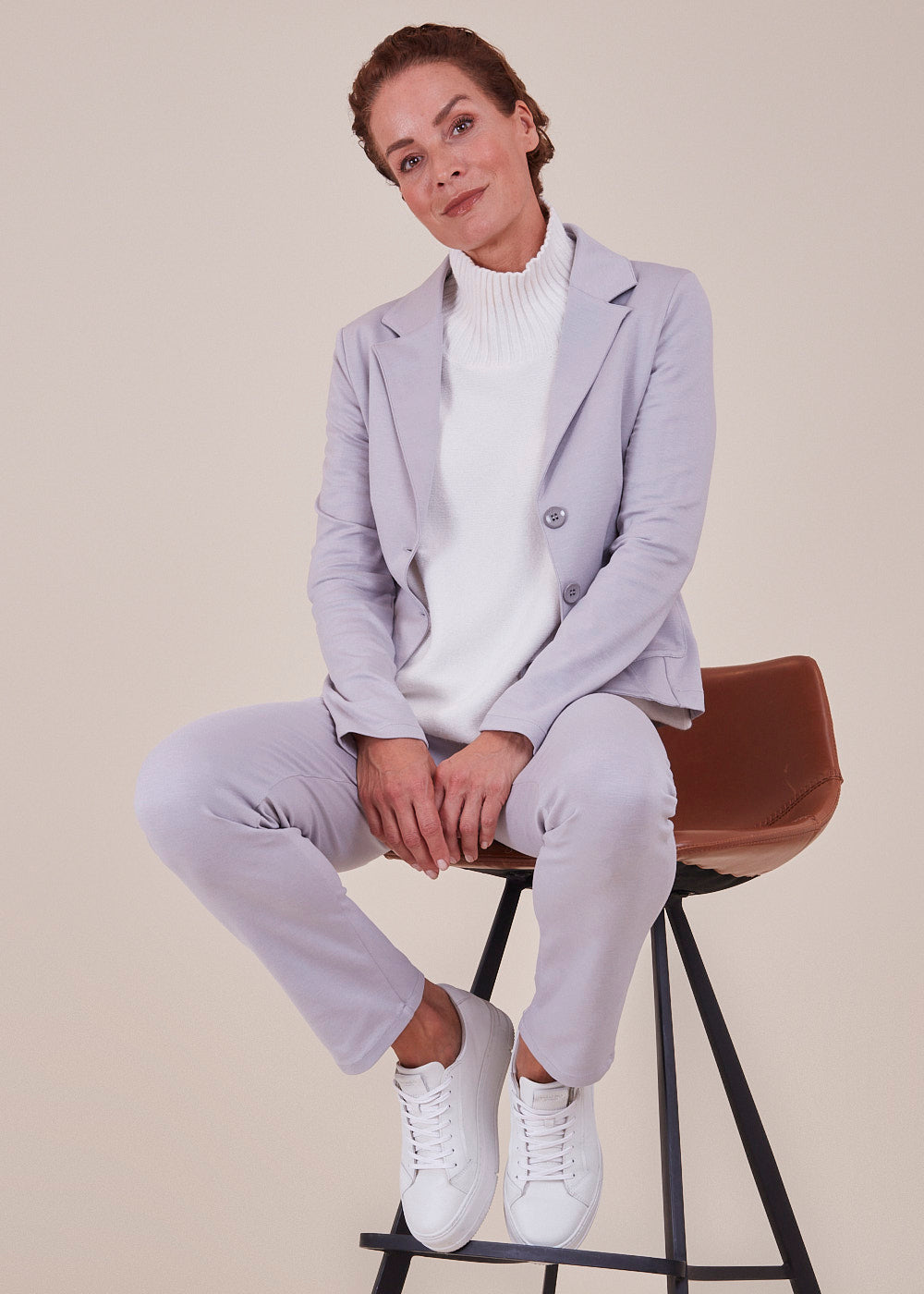 Unglaublich, wie lässig ein Blazer wirken kann: Wir haben den Klassiker als Sweat-Variante, perfekt für alle die es gerne bequem und schick haben. Der Blazer hat einen figurbetonten und kürzeren Schnitt. Passend zu unserem Sweat Blazer ist auch noch die Hose im Shop zu finden.