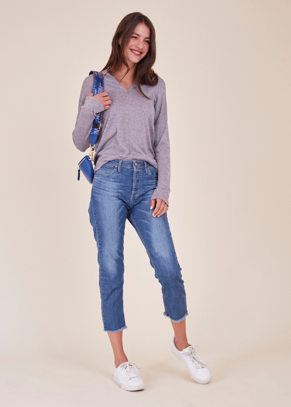 Das Model trägt bei einer Körpergröße von 179 cm die Konfektionsgröße S.