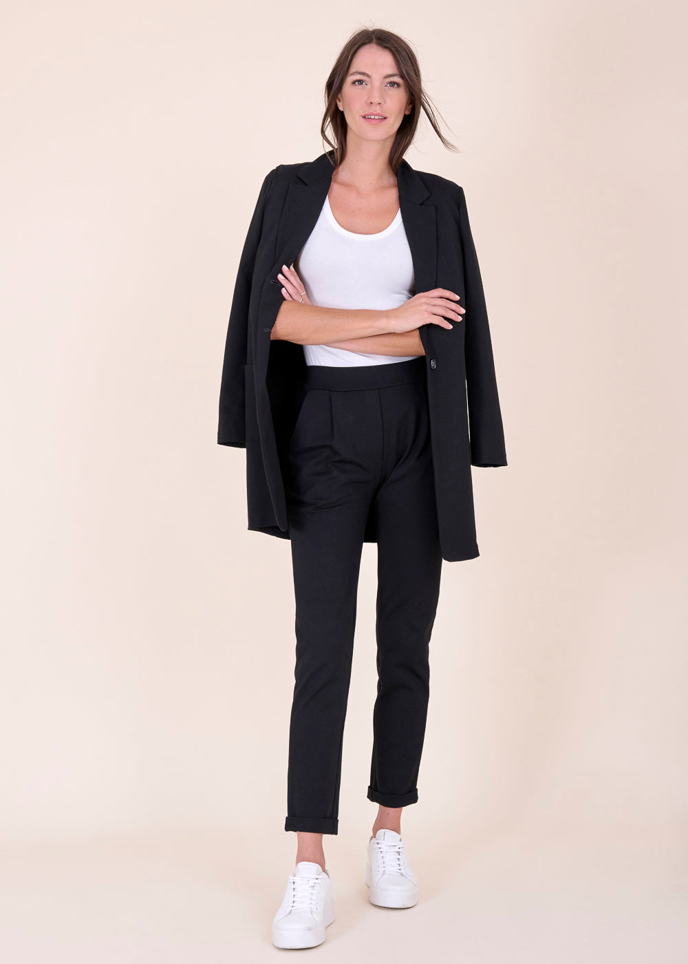Eine bequeme Hose mit dem gewissen Etwas! Diese Sweat Hose ist ein trendy It-Piece für jeden Look. Vor allem dem besonderen Materialmix ist es zu verdanken, dass sich diese Hose unglaublich komfortabel anfühlt. Der Hosenbund ist mit einem Gummizug ausgestattet, sodass der perfekte Sitz garantiert ist. Kombiniere diesen Artikel gerne mit unserem passenden Longblazer, den du ebenfalls in unseren Shop finden kannst.