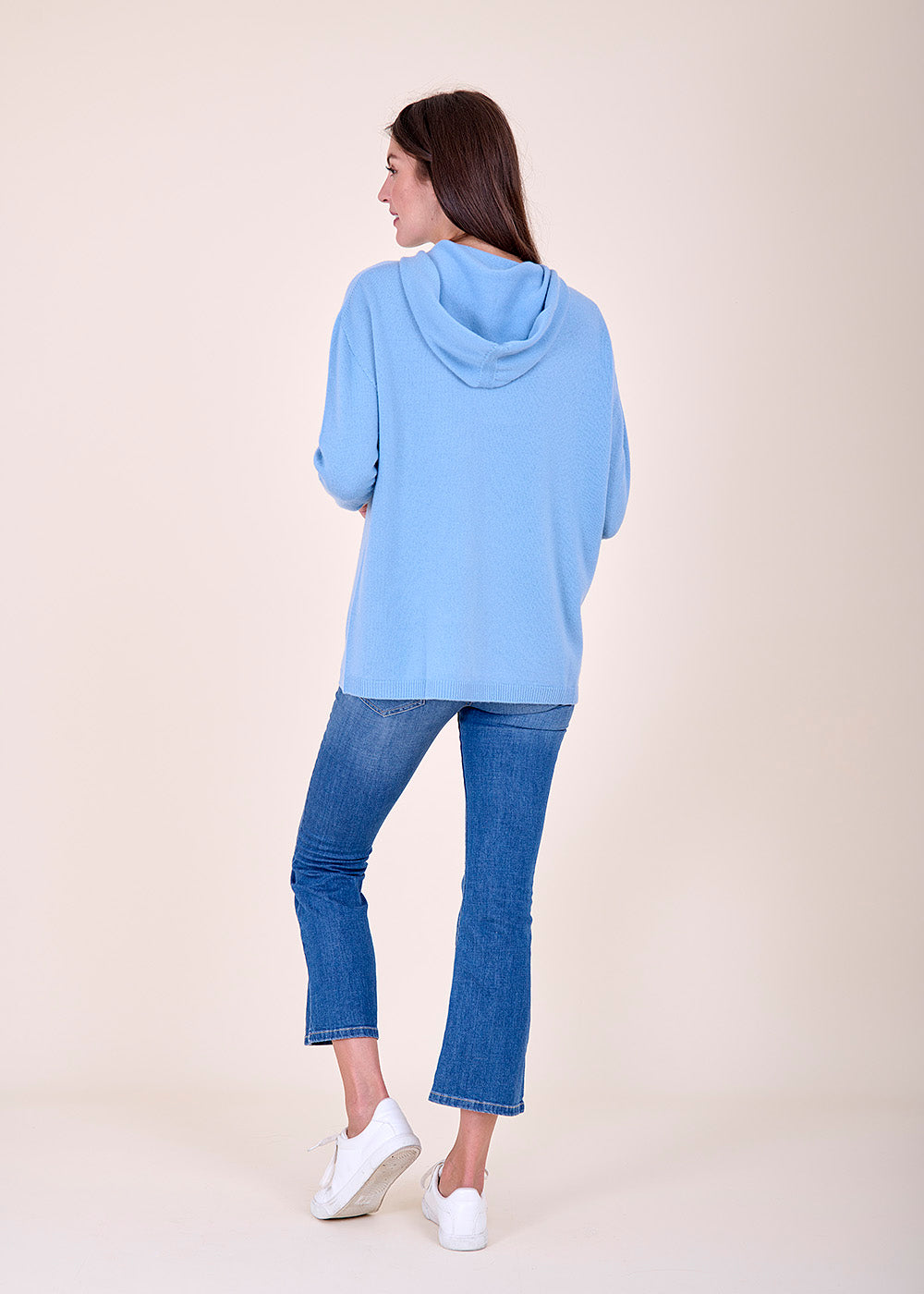 Dieser edle Pullover besteht aus 100% Laine-Wolle und überzeugt durch seine Hochwertigkeit. Der Hoody wurde samt Kapuze und aufgesetzter Tasche rundgestrickt und weißt damit keine Nähte auf. Die Ärmelsaumen und der Bund zeigen eine Rippenoptik. Dieses Produkt ist etwas für wahre Modekenner und Qualitätsliebhaber!