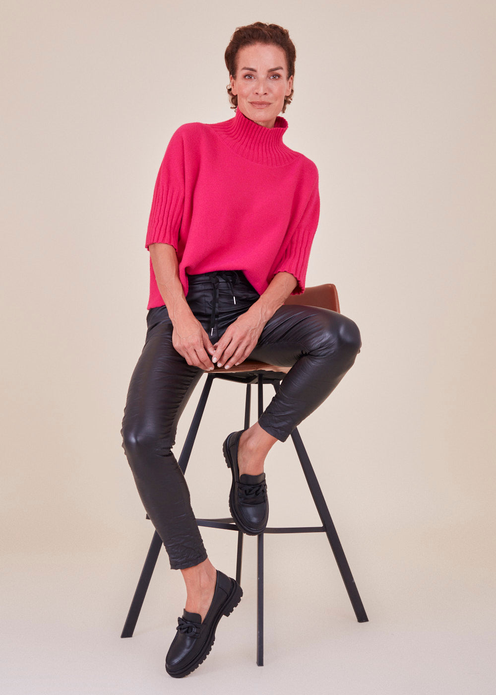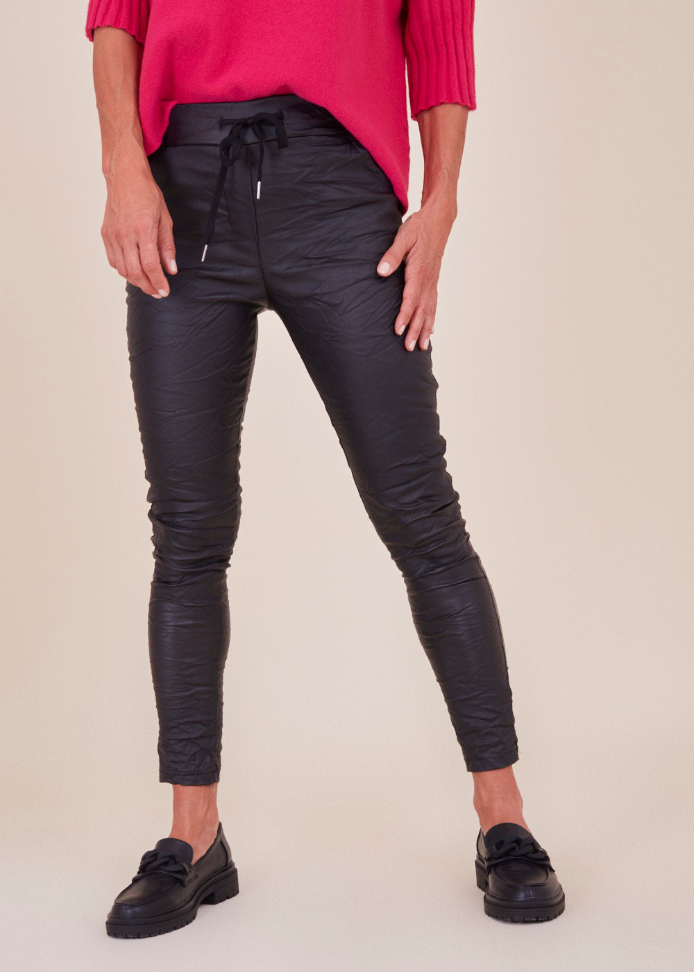 Unser Bestseller! Hose aus Viskose und Elasthan. Dadurch sitzt sie super bequem und lässt sich prima zu Allem kombinieren. Gummizug im Bund, Tunnelzug mit Band und seitliche Eingriffstaschen.