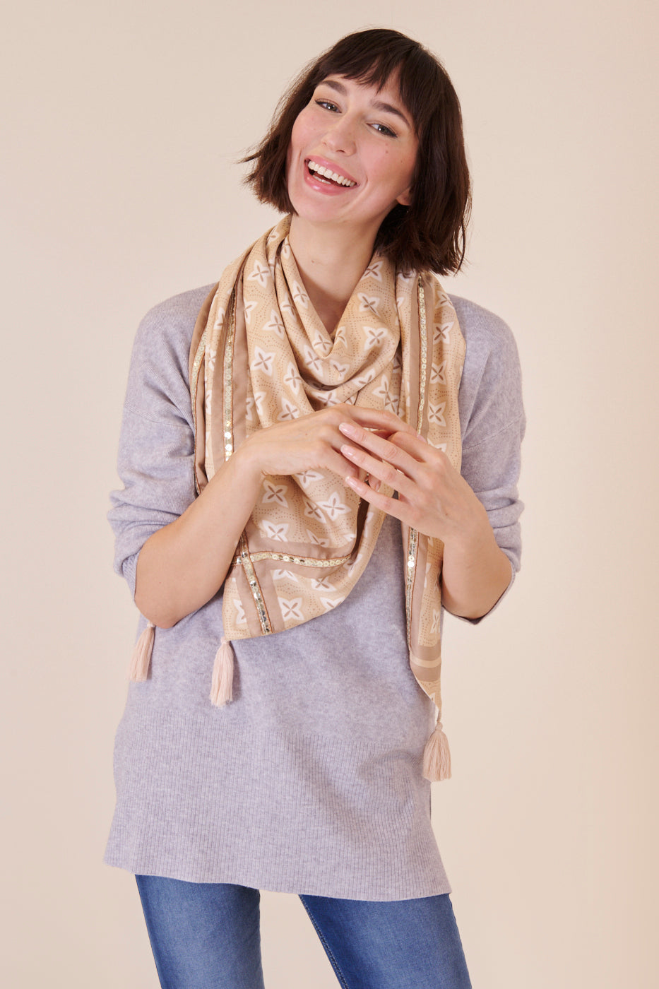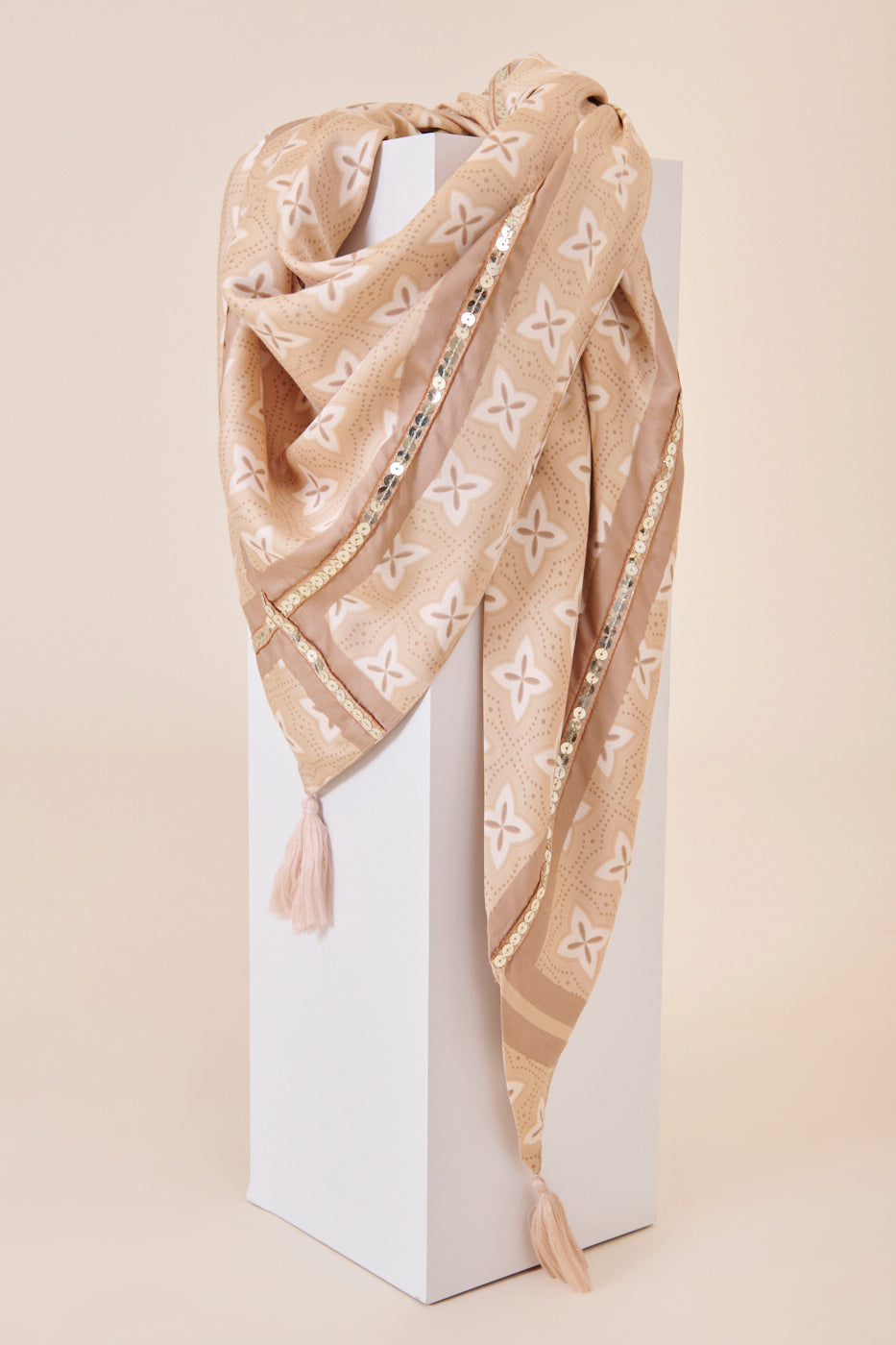 Dreiecks-Tuch aus reiner Bambus Viskose in Print Optik. Ein besonderer Hingucker! Mit dem verspielten Dreieckstuch kannst du dein Outfit ganz einfach aufpeppen. Wir lieben es jetzt schon.