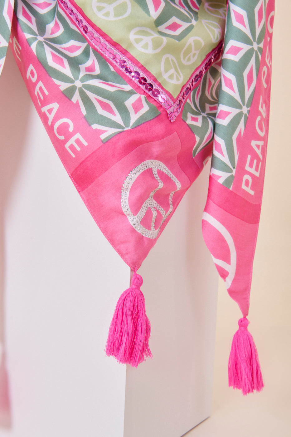 Dreiecks-Tuch aus reiner Bambus Viskose in Print Optik. Ein besonderer Hingucker! Mit dem verspielten Dreieckstuch kannst du dein Outfit ganz einfach aufpeppen. Wir lieben es jetzt schon.