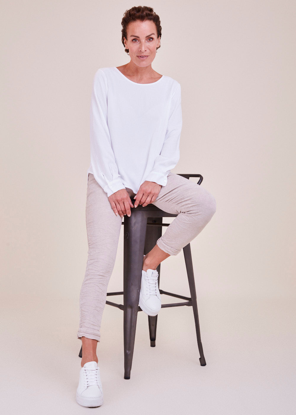 Umwerfende Tunika Bluse in einem Unifarbenden Design. Die Bluse hat eine Kellerfalte im Rücken und ist aus reinster Viskose. Sie hat lange Arme und ist das perfekte Basic zum Kombinieren. Trage diese umwerfende Tunika auch gerne mal unter einem Blazer.