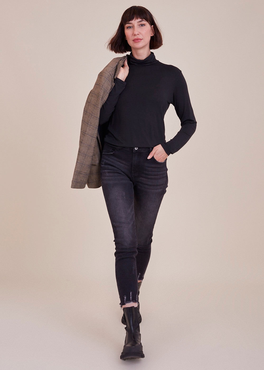 Großartiges Jersey Shirt in körperbetonter Modern Fit-Passform mit Rollkragen. Ein perfektes Basic für die kühleren Tage. Durch sein körperbetonten Schnitt und sein angenehmes Material eignet er sich perfekt zum drunter ziehen. Viel Spaß beim kombinieren.