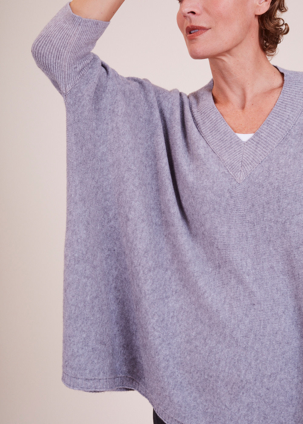 Lässig und kastenförmig geschnittener Pullover mit V-Ausschnitt. Er hat besondere Rippendetails am Ausschnitt, sowie am Saum und Armabschluss. Ein absoluter Wohlfühl Pullover aus einem großartigen Materialmix. Kombiniere diesen Artikel, um ganz lässig zu wirken, mit einer Jeans und Boots