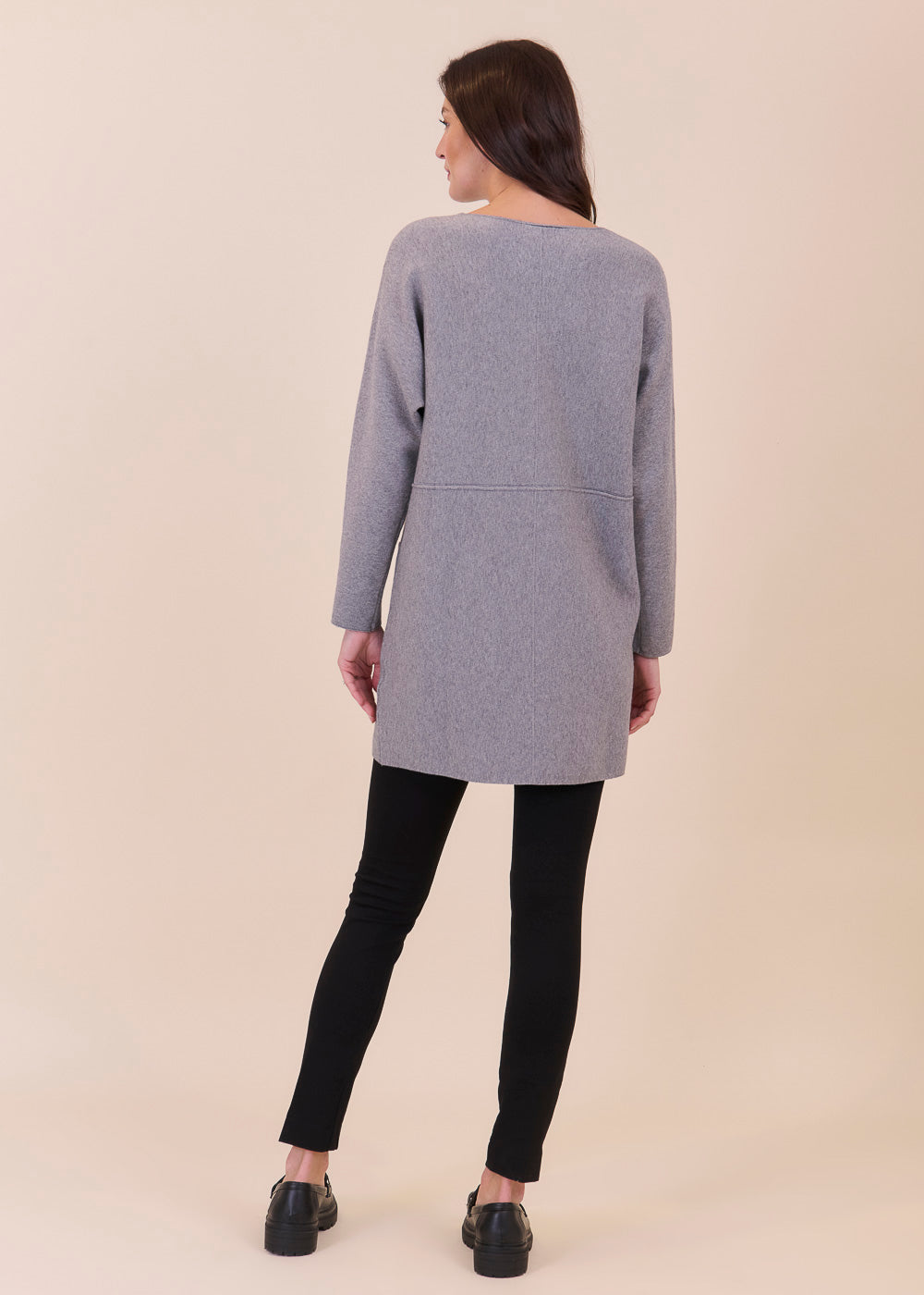 Lässig geschnittenes Strickleid aus unserem Kuschelgarn. Es hat lang geschnittene Arme und besondere Nahtdetails. Die aufgesetzten Taschen geben dem Kleid eine gewisse Lässigkeit.Einfach zum Wohlfühlen!