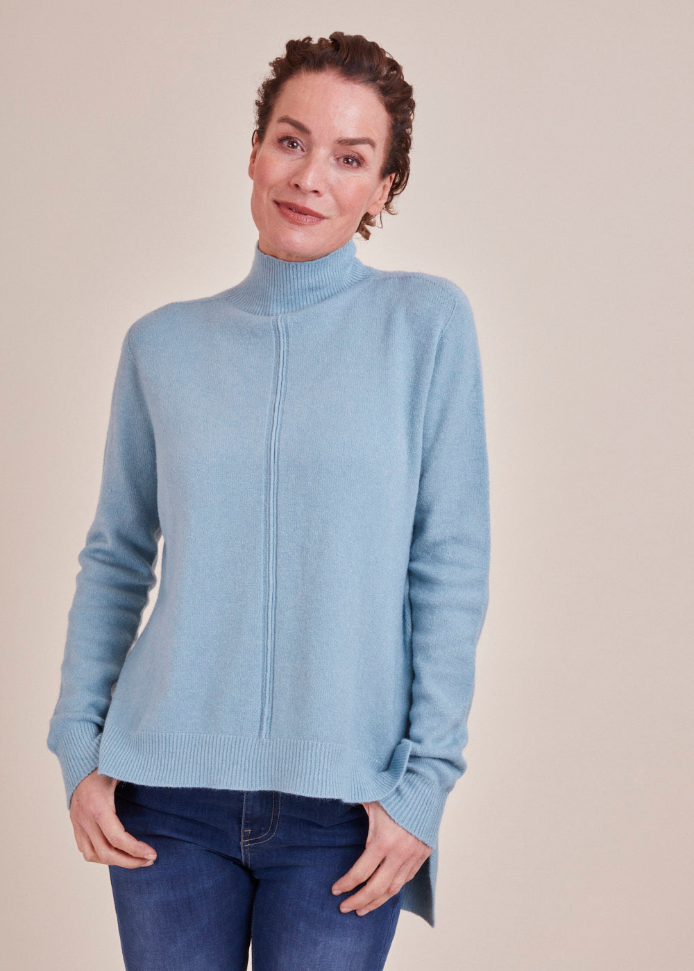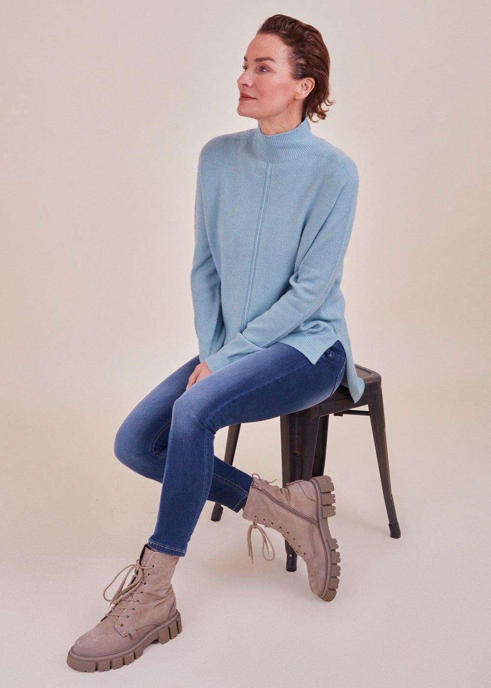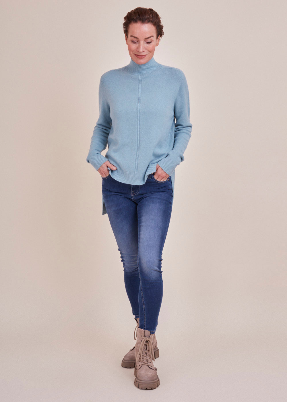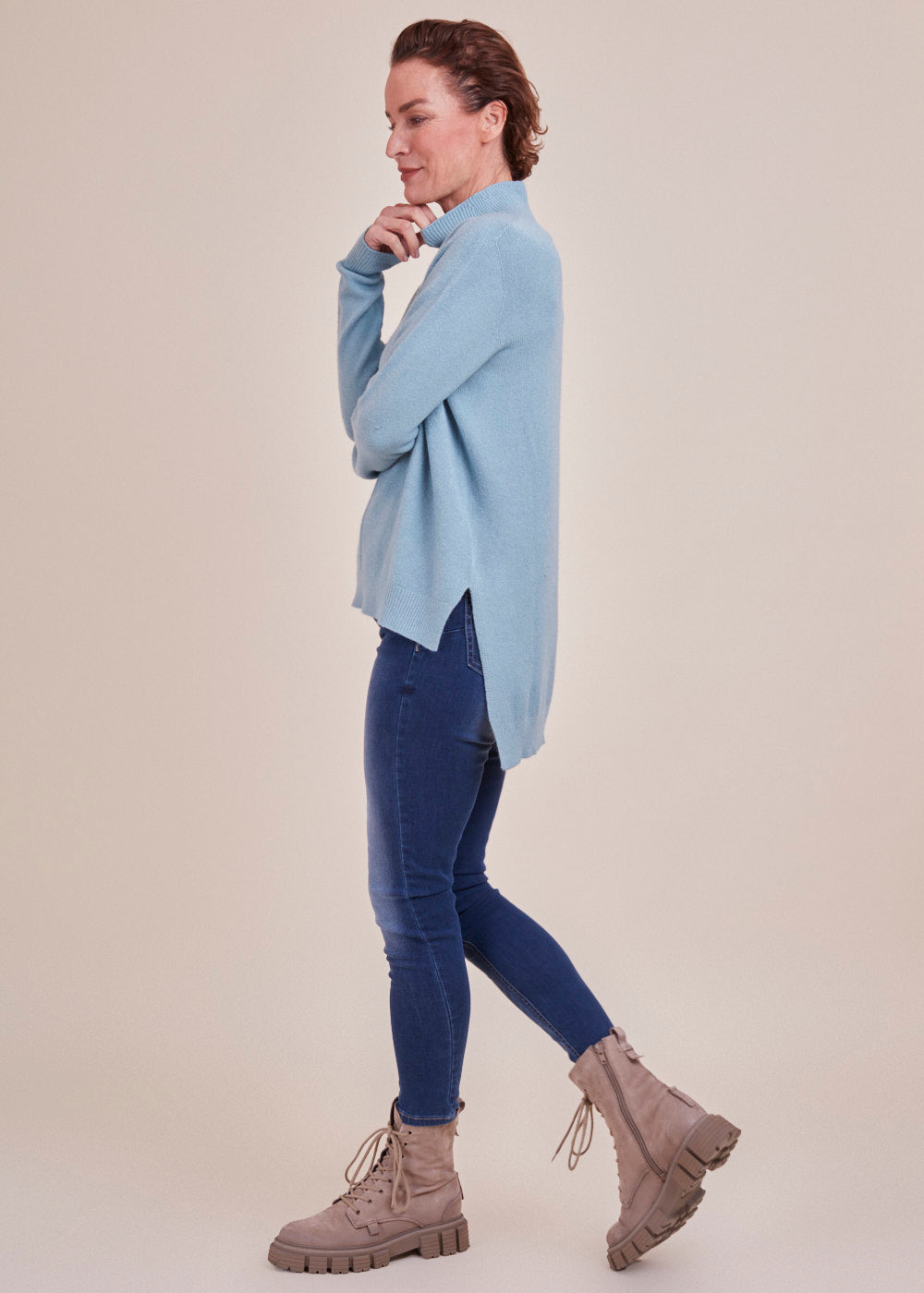 Der weiche Damen Pullover aus unserem Kuschelgarn ist ein rundum gelungenes Stück Fashion. Abgerundet wird der moderne Style mit seinen seitlichen Schlitzen und seinem verlängerten Rückenteil. Der besondere Turtle Neck Pulli hat zudem gerippte Bündchen an Ärmeln und Saum. Ein zauberhaftes neues Strickteil.