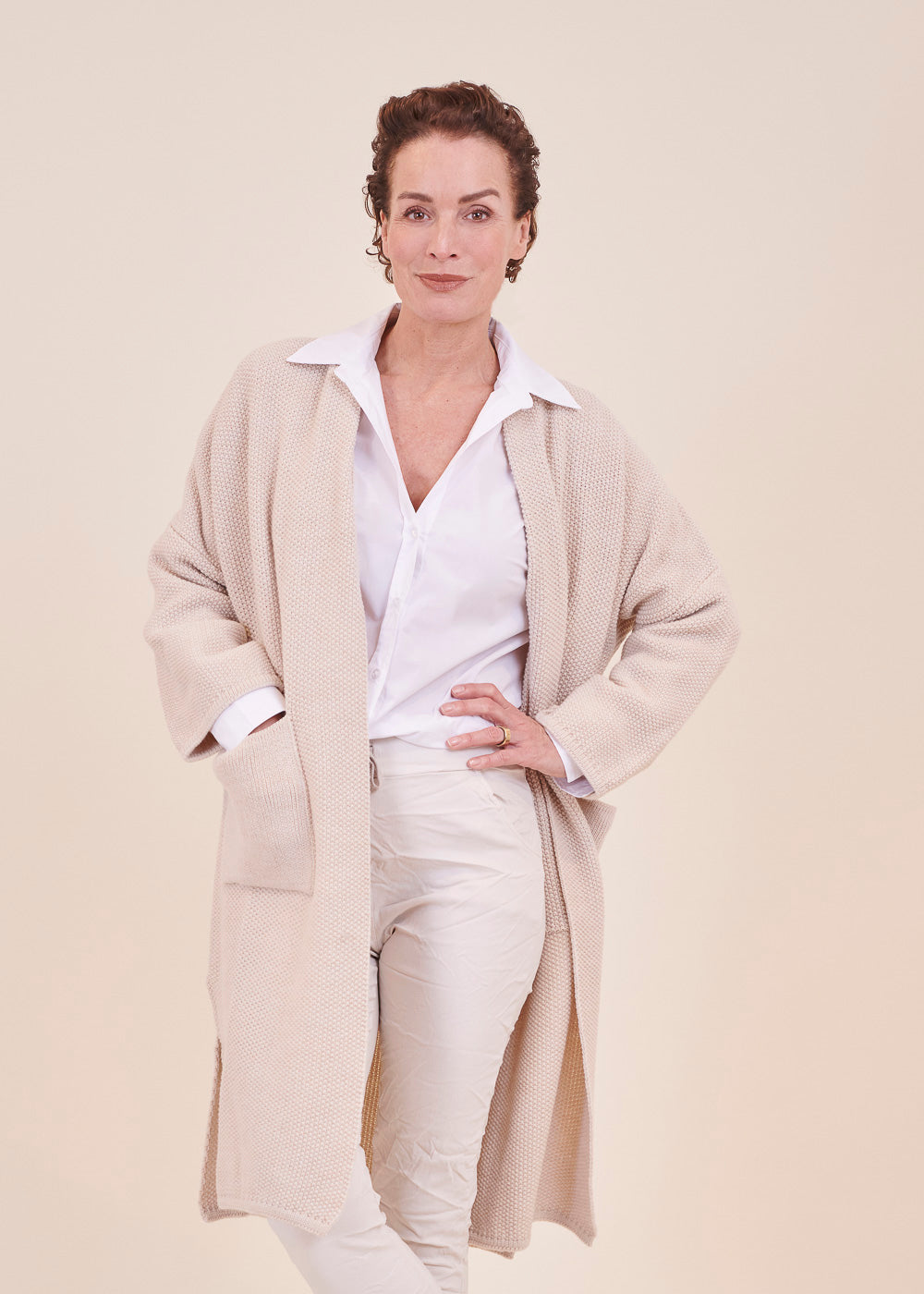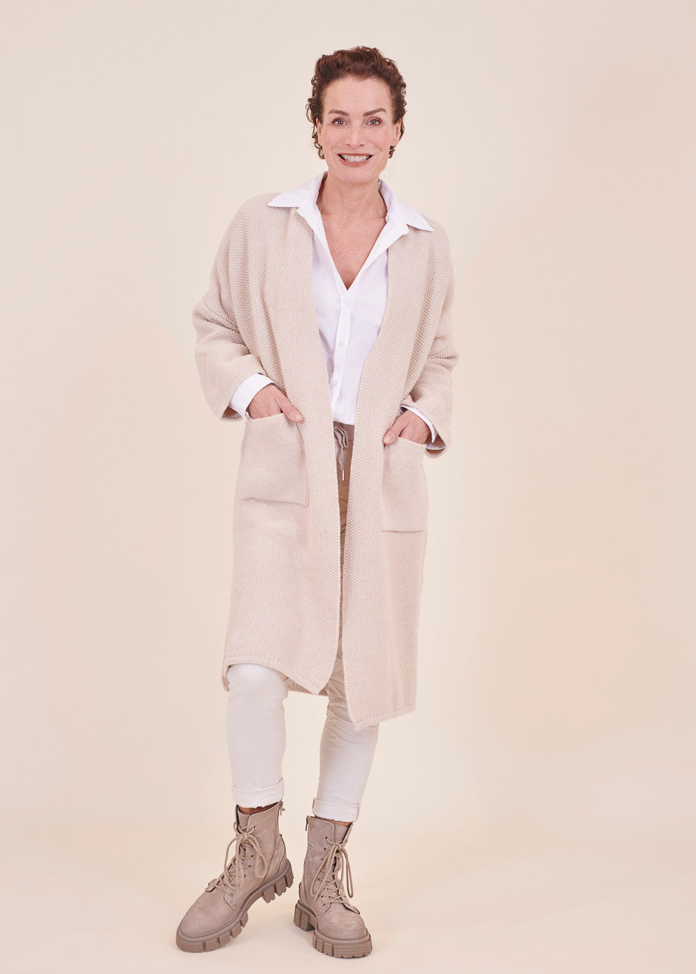Dein neues Lieblingsteil. Diese Strickjacke lässt jeden Strahlen. Der Cardigan ist lang geschnitten und so besonders lässig und bequem. In der verschlusslosen Art fällt die gemütliche Strickjacke locker und der softe Materialmix lädt zum Einkuscheln ein. Auch die aufgenähten Taschen verleihen einen lässigen Look für coole Styles!