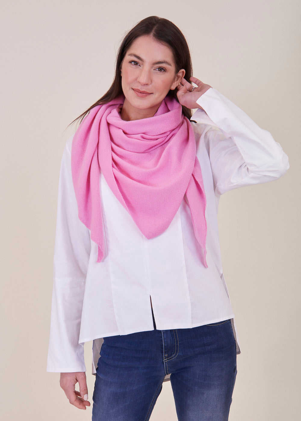 Unser geliebter Dreieckschal aus 100% feinsten Kaschmir. Für den absoluten Wohlfühl-Look. Es hat fein umsäuberte Kanten. Dieser besonders weiche Dreiecksschal  lässt sich zum Strickkleid kombinieren, indem du es als Stola nutzt. Darüber hinaus ist es auch ein stylischer Begleiter zu unseren neuen Looks. Ein absoluter Alltagsheld, der jedem Outfit einen großartigen Touch verleiht.