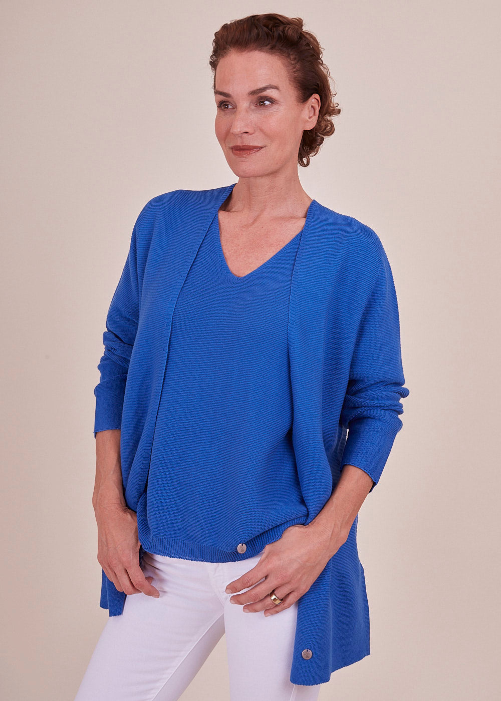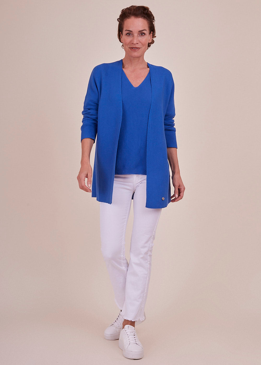 Eines der saisonalen Trendstücke: Die Strickjacke bietet sich an, dein neuer Alltagsfavorit zu werden! Der verschlusslos offen gehaltene Cardigan strahlt in einem wunderschönen blau Ton und überzeugt durch seine hochwertige Verarbeitung.  Wir haben auch den passenden Pullover in unserem Shop. Einfach edel!