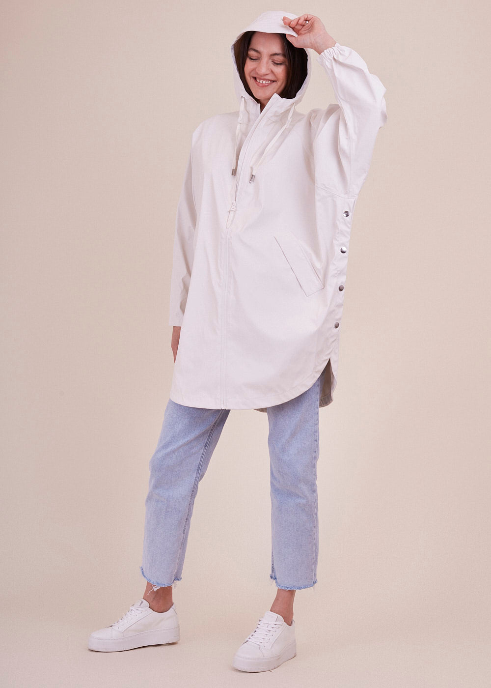 Wasserdichte Regenjacke, die Sie überall mit hin mitnehmen können. Dieser Regenponcho macht nicht nur eine gute Figur, sondern hält auch dem schlechtem Wetter stand. Gefertigt aus unserem ikonischen Polyurethan-Gewebe, sind alle Nähte für hervorragenden Schutz verklebt. Eine entspannte offene Passform mit Druckknopfverschluss an den Seiten sorgt für mehr Luftzirkulation und Vielseitigkeit. Verlassen Sie das Haus nicht ohne sie.