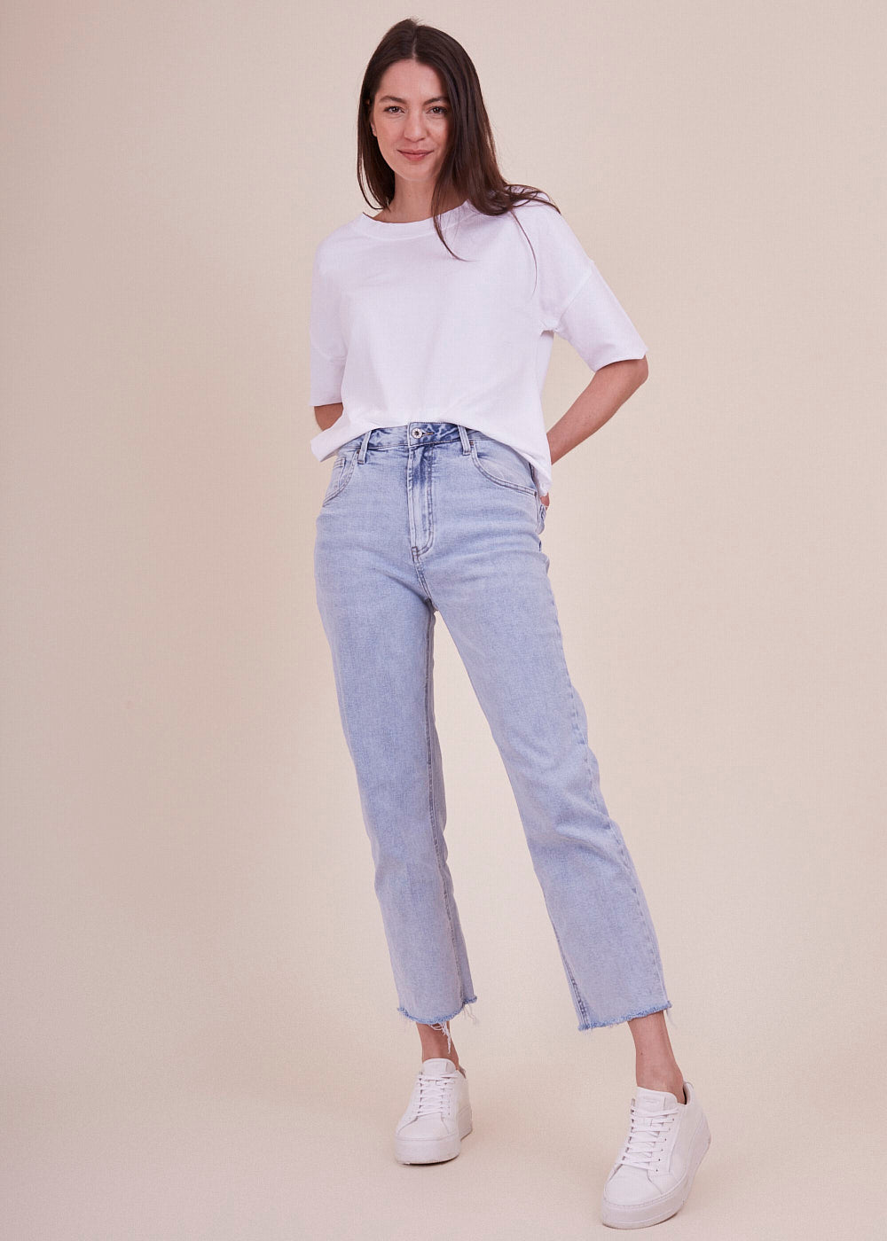 Deine neue Lieblings Jeans wartet schon auf Dich! Hochtailliert und an den Oberschenkeln etwas weiter geschnitten: Diese nach unten hin gerade zulaufende, blaue Hose mit besonderen Saumabschluss ist einfach nur besonders. Das angenehme Stretch Material sorgt für einen perfekten Sitz und ist darüber hinaus noch super bequem.