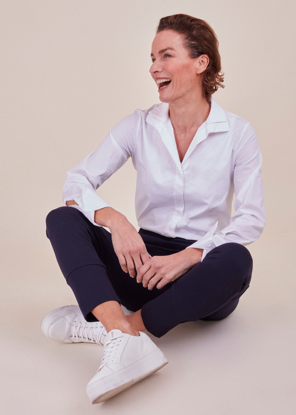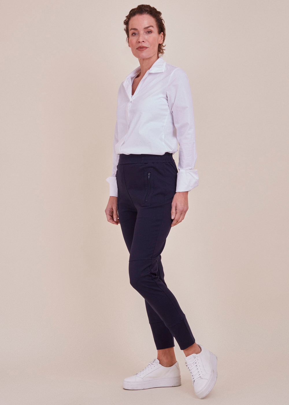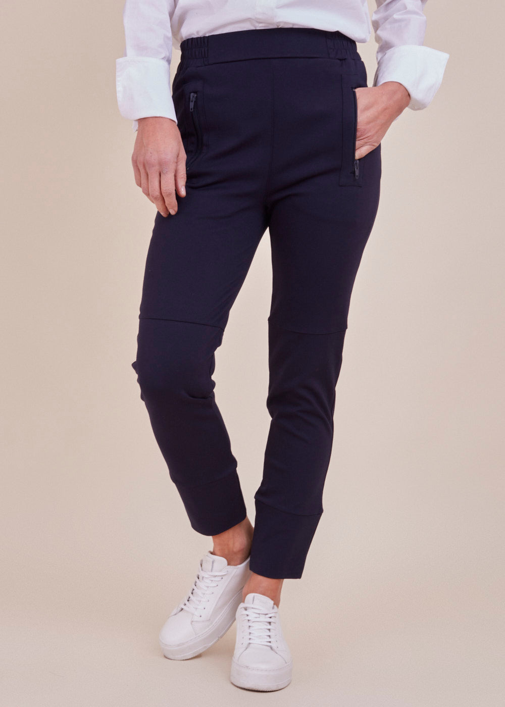 Wir lieben unsere Jogger! Die gerade Beinform der Hose liegt leicht an, aber engt nicht ein. Durch ihren Elasthan- Anteil sitzt den ganzen Tag bequem. So fühlst du dich den ganzen Tag wohl, egal ob beim Shoppingbummel oder beim Kaffeeplausch mit Freunden. Durch den dehnbaren und formstabilen Materialmix fühlt sich die Hose beim Tragen besonders gut an. Mit seitlichen Reißverschlüssen. Für einen klassischen Look eignet sich eine Seidenbluse zusammen mit Pumps. Schön lässig wirkt der Look dagegen mit einem T-Shirt und cooles Ankle-Boots.