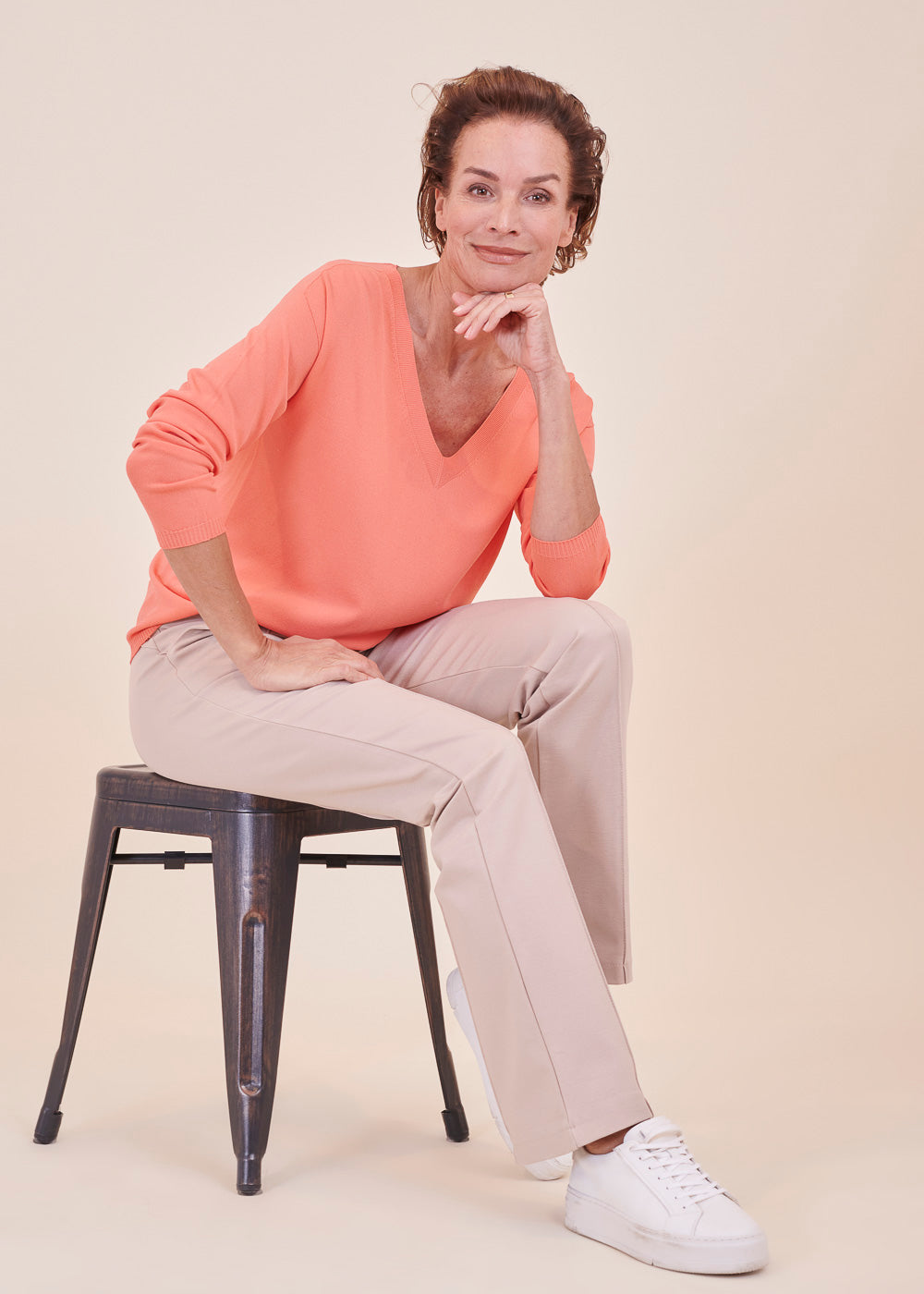 Das Model trägt bei einer Körpergröße von 179 cm die Konfektionsgröße S.