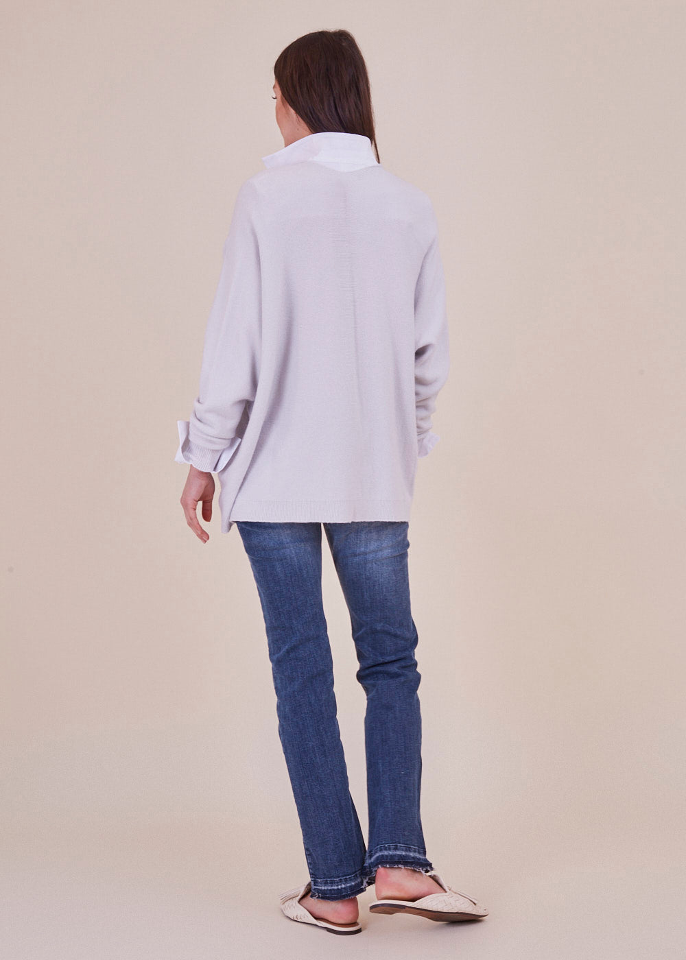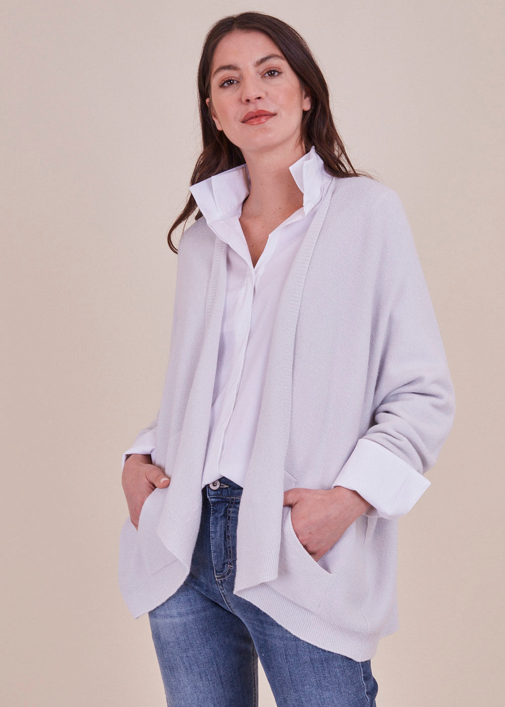 Kastenförmig geschnittene Strickjacke mit langen Armen aus unserem Bestseller Garn. Sie hat ein Rippenbündchen an den Ärmeln und am Saum. Kuschelig weicher Tragekomfort mit absoluter Wohlfühlgarantie und durch seine Leichtigkeit perfekt für das Frühjahr.