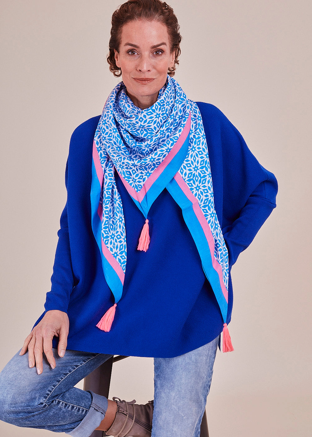 Dreiecks-Tuch aus reiner Bambus Viskose in Print Optik. Ein besonderer Hingucker! Mit dem verspielten Dreieckstuch kannst du dein Outfit ganz einfach aufpeppen. Wir lieben es jetzt schon.