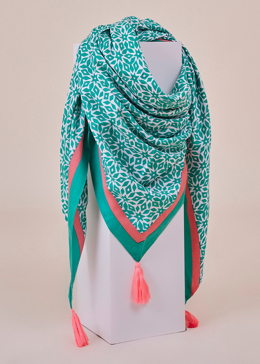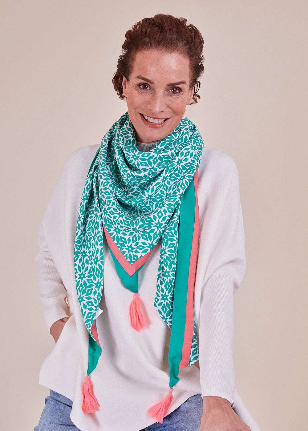 Dreiecks-Tuch aus reiner Bambus Viskose in Print Optik. Ein besonderer Hingucker! Mit dem verspielten Dreieckstuch kannst du dein Outfit ganz einfach aufpeppen. Wir lieben es jetzt schon.