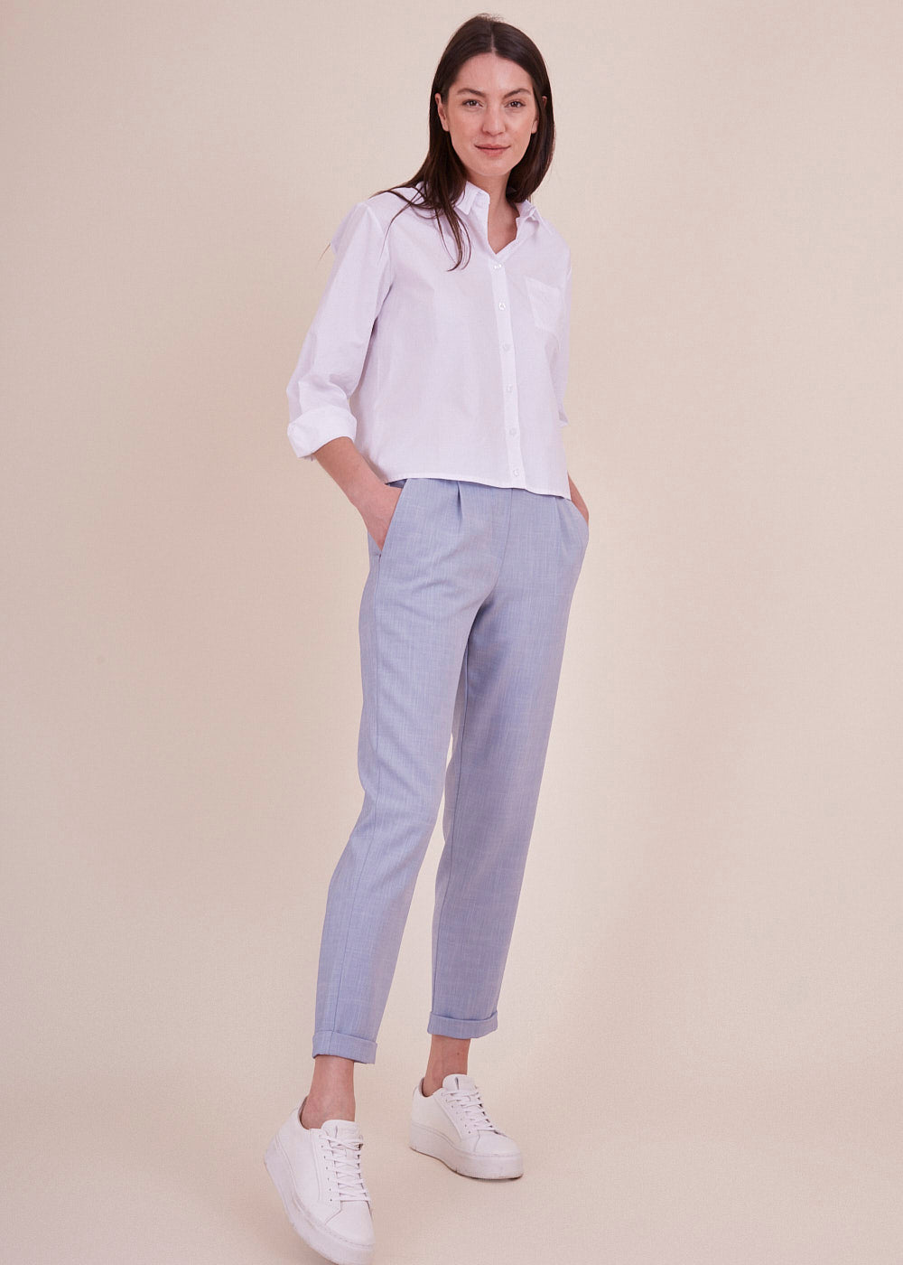 Tolle Bundfaltenhose mit geradem Bein. Die Hose sitzt besonders lässig durch seinen Gummizug und hat seitliche Eingriffstaschen. Besonders toll in Kombination mit dem passenden Blazer und einer weißen Bluse. Einfach lässig und stylisch.