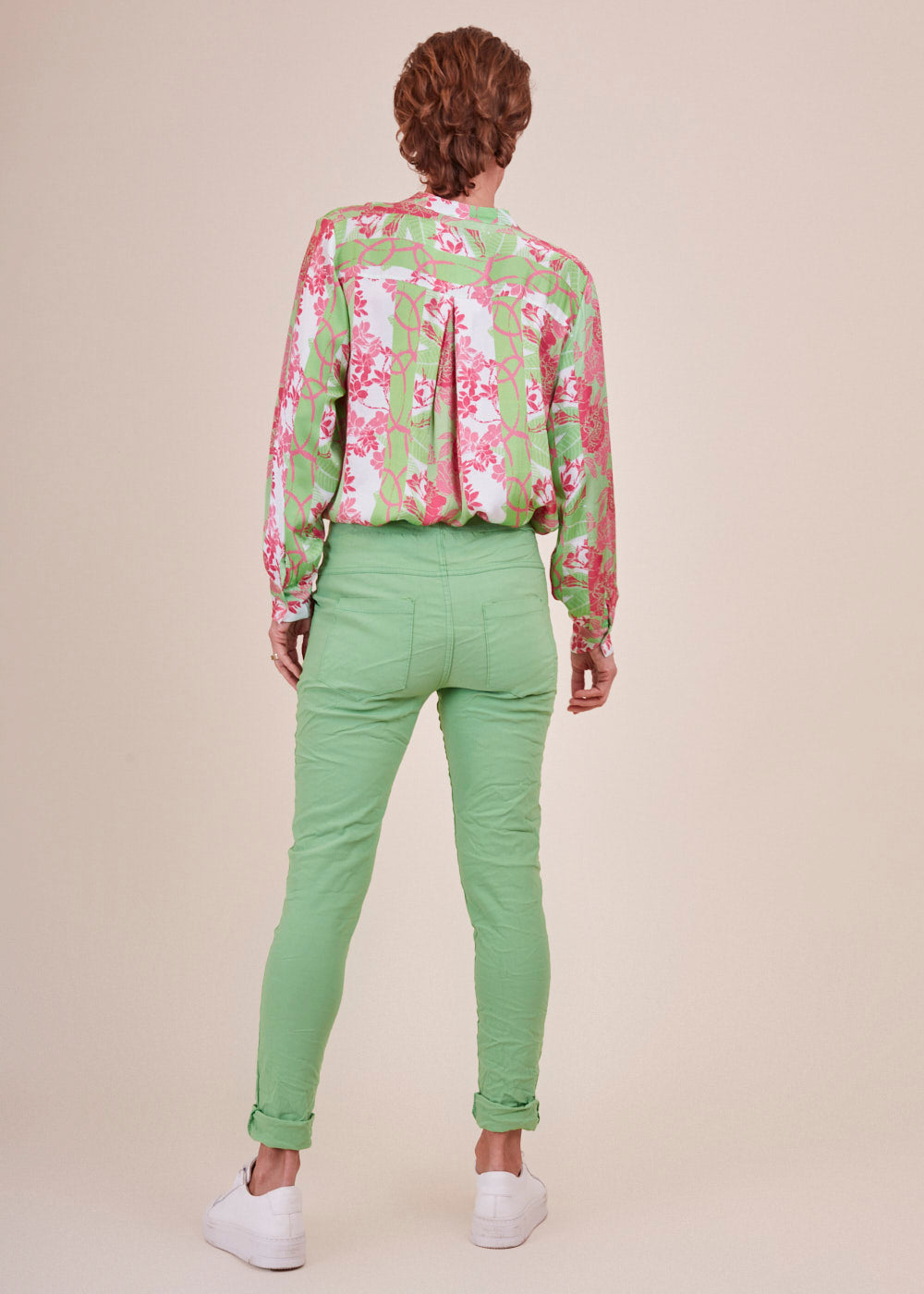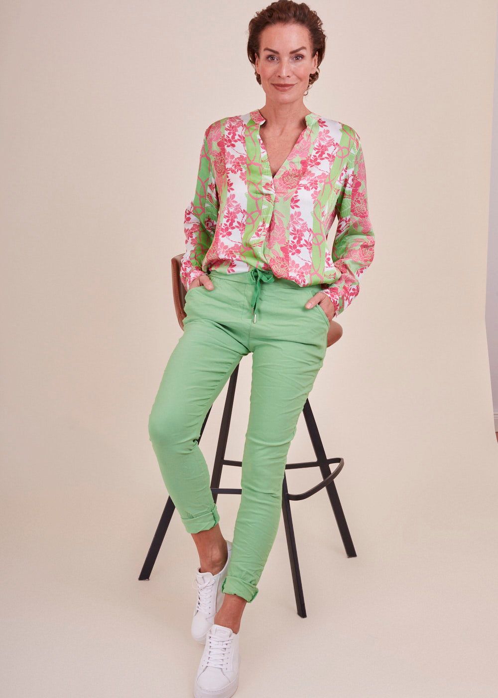 Wir haben Lust auf Farbe! Unser Bestseller! Hose aus Viskose und Elasthan-Anteil. Dadurch sitzt sie super bequem und lässt sich prima zu Allem kombinieren. Gummizug im Bund, Tunnelzug mit Band und seitliche Eingriffstaschen.