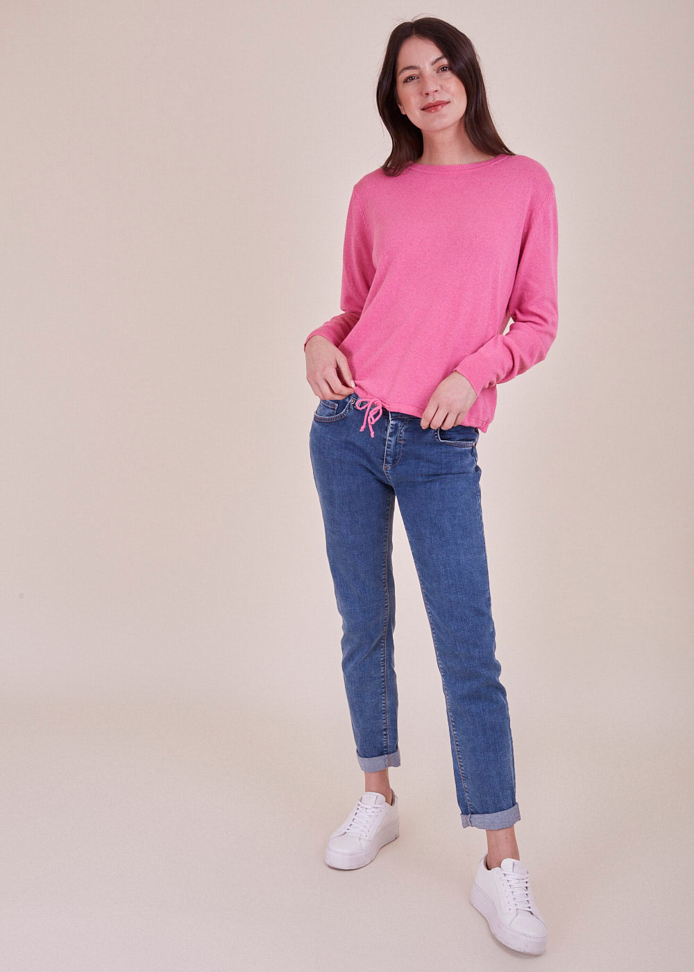Leichter Pullover mit Tunnelzug am Bündchen. Der Pullover hat lange Arme und schmale Rippendetails am Ärmel. Er eignet sich wunderbar für einen Casual-Style. Die frische Unifarbe verleiht jedem Outfit eine tolle Optik und lässt sich dadurch ideal kombinieren. Langer Ärmel mit einem geraden Ärmelabschluss.