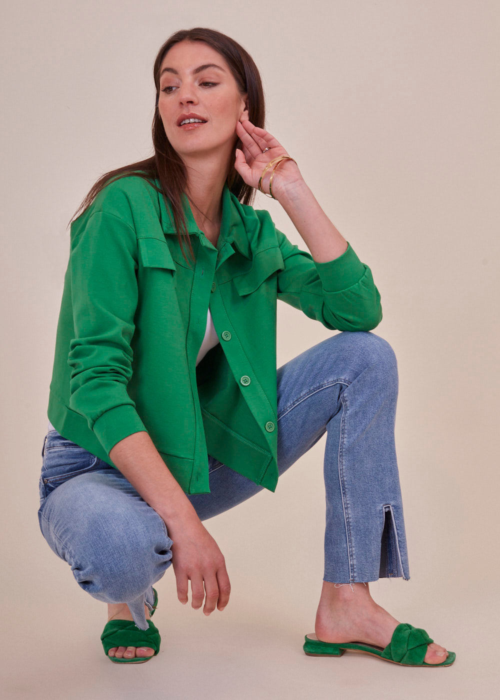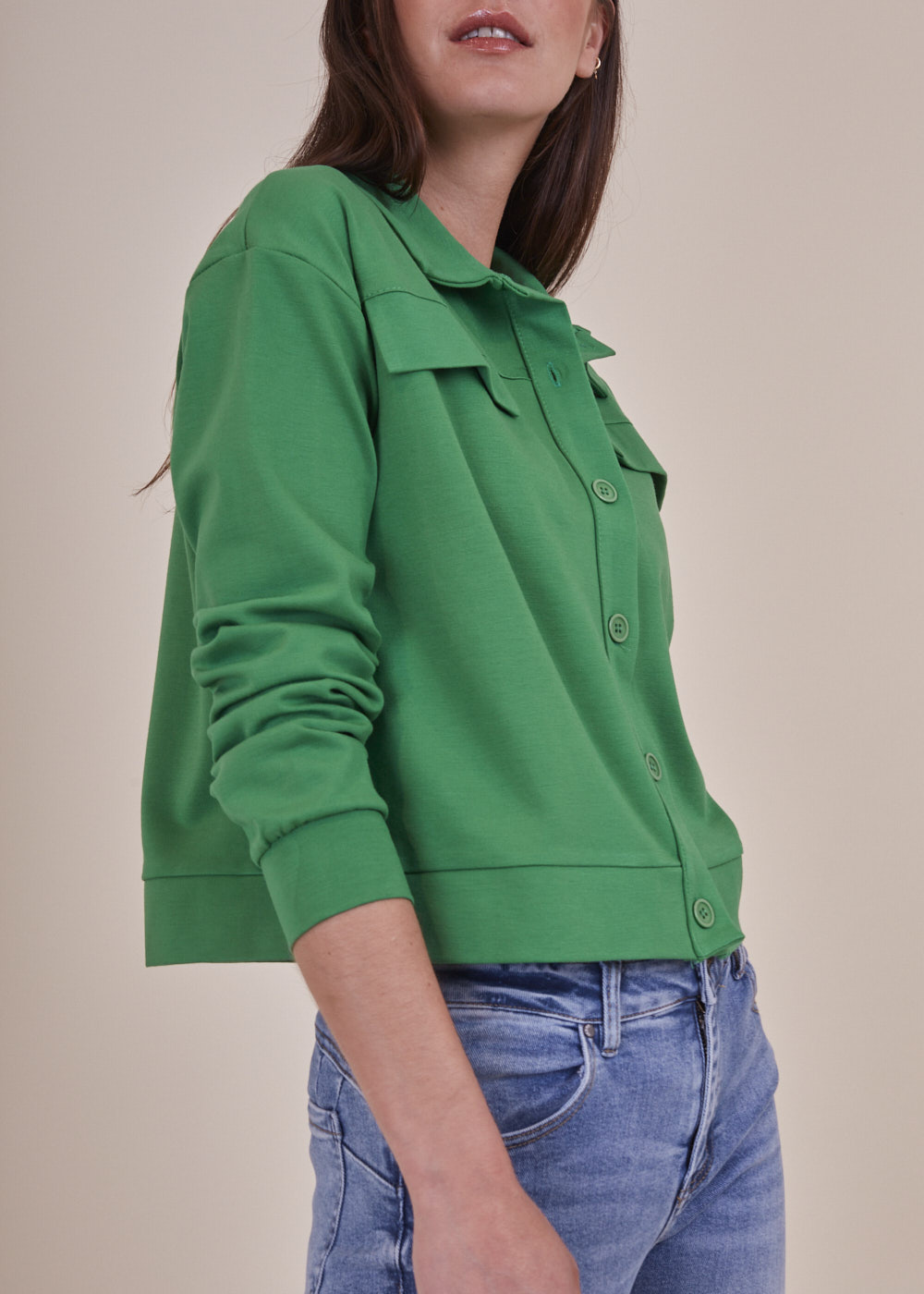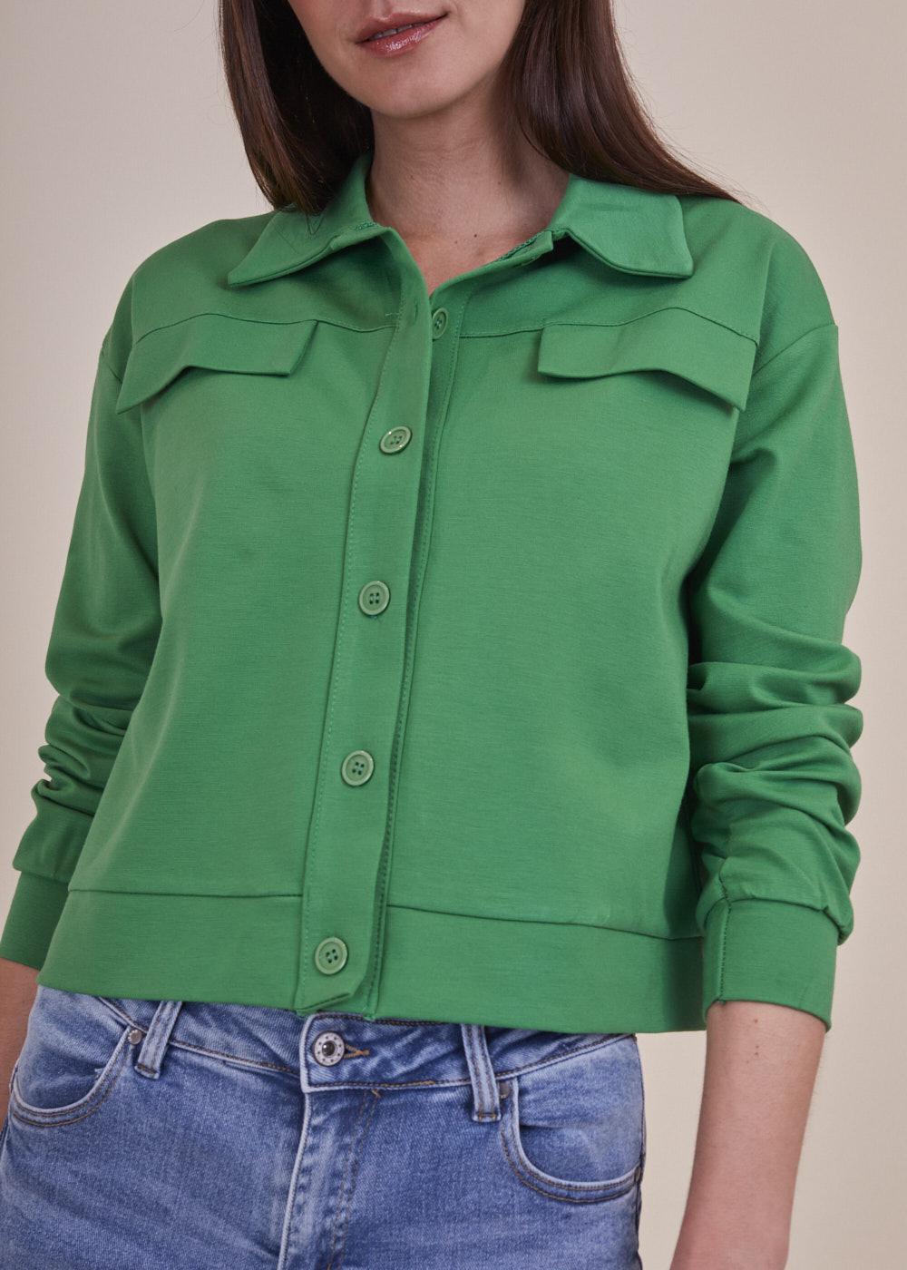 Für unsere Fashionista ! Die modische Kurzjacke ist ein absoluter Trendartikel für diese Saison. Mit coolem Hemdkragen, großen aufgesetzten Taschen und der durchgehenden Knopfleiste setzt Sie ein modisches Statement und und macht deinen Sommerlook zu einem Eyecatcher! Du kannst diesen Artikel geöffnet, aber auch gerne geschlossen tragen. Viel Spaß beim kombinieren!