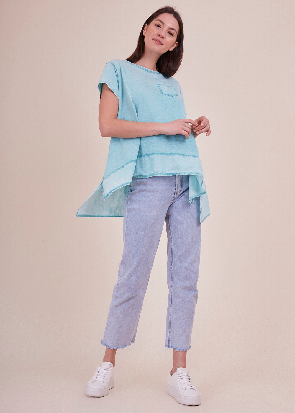 Ein Tag mit Radtour und anschließendem Ausflug zum See ist geplant? Das locker geschnittene Shirt schränkt dich in deiner Bewegungsfreiheit nicht im Geringsten ein und ist dank seines weichen Materials wunderbar bequem zu tragen. Es hat einen A-linienförmigen Schnitt und ein leicht verlängertes Rückenteil mit seitlichen Schlitzen. Mit einer kleinen Brusttasche. Einfach besonders!
