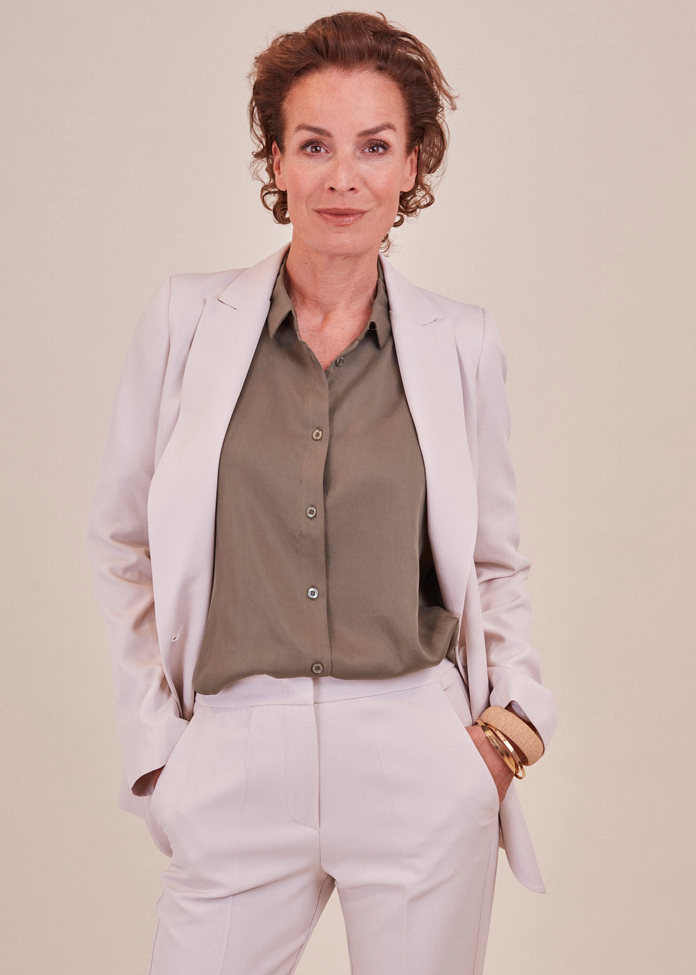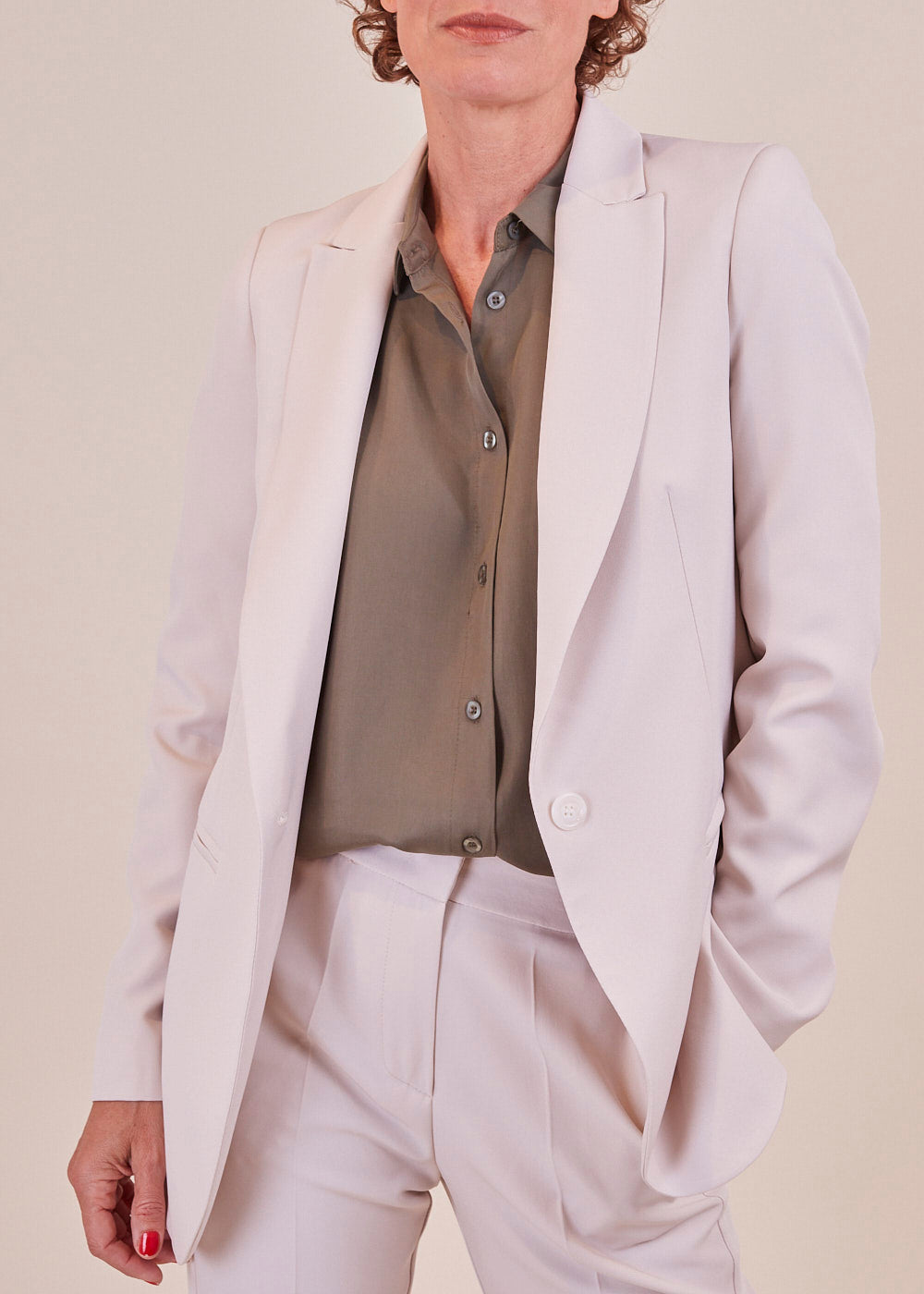 Schicker Blazer, der durch sein Material einen angenehmen Tragekomfort garantiert. Der gerade geschnittene Blazer hat Paspel Taschen und einen Reverskragen. Kombiniere diesen Blazer gerne mit Jeans oder zu der passenden Hose, die ebenfalls in unserem Shop erhältlich ist.