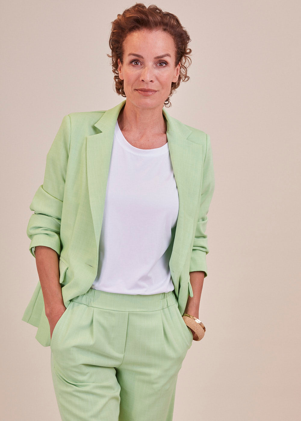 LIME! Unglaublich, wie lässig ein Blazer wirken kann: Wir haben den Klassiker in der modischen Variante. Der Blazer hat lässigen Schnitt.Fantastisch in Kombination mit der dazugehörigen Bundfalten-Hose oder leger getragen mit einer Blue-Jeans.