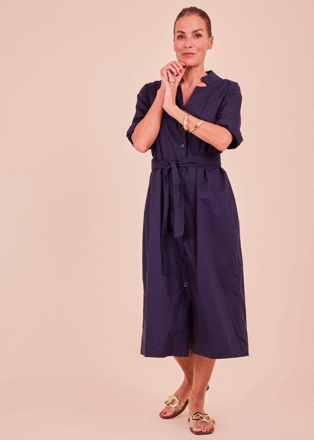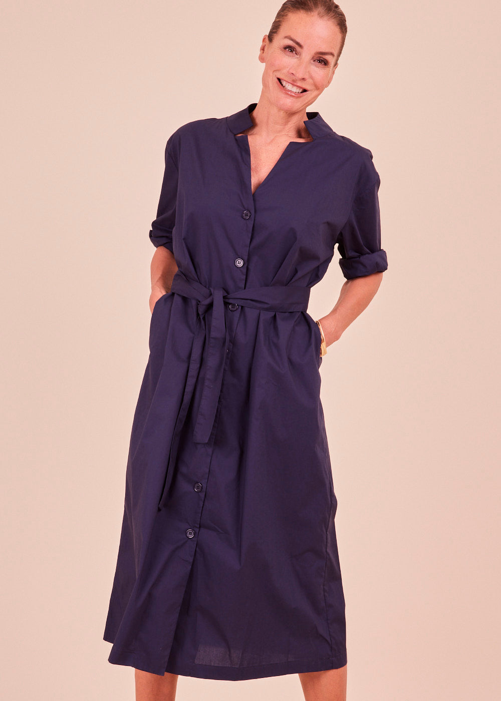 Oversized geschnittenes Hemdblusenkleid mit dreiviertel Ärmeln in einem großartigen blau Ton. Dieses Blusenkleid aus einem Viskosemix hat eine offene Knopfleiste vorne. Der lässig fallende Schnitt eignet sich perfekt für legere Alltags-Looks. Mit einem passenden Bindegürtel. Egal ob mit Sneakern oder Sandalen, das Kleid ist ein absoluter Hingucker.