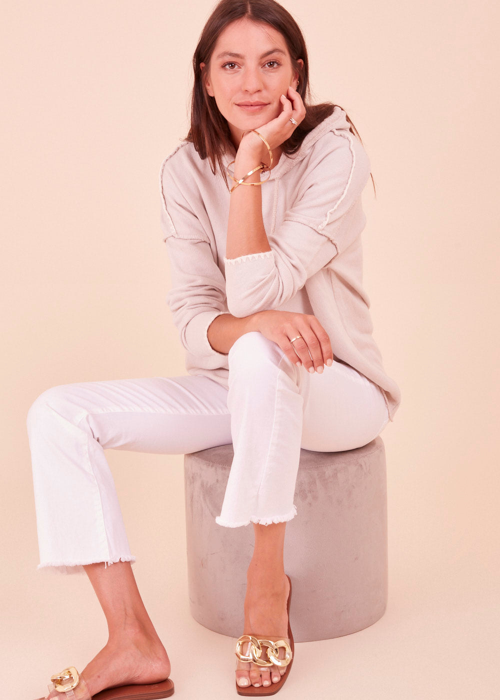 Das Model trägt bei einer Körpergröße von 179 cm die Konfektionsgröße I.