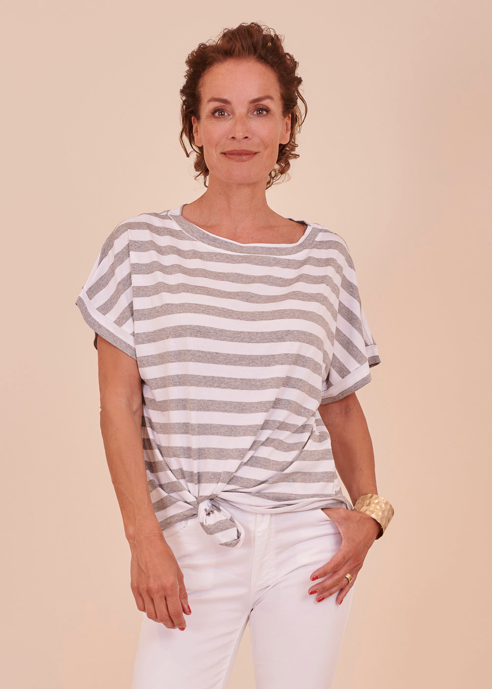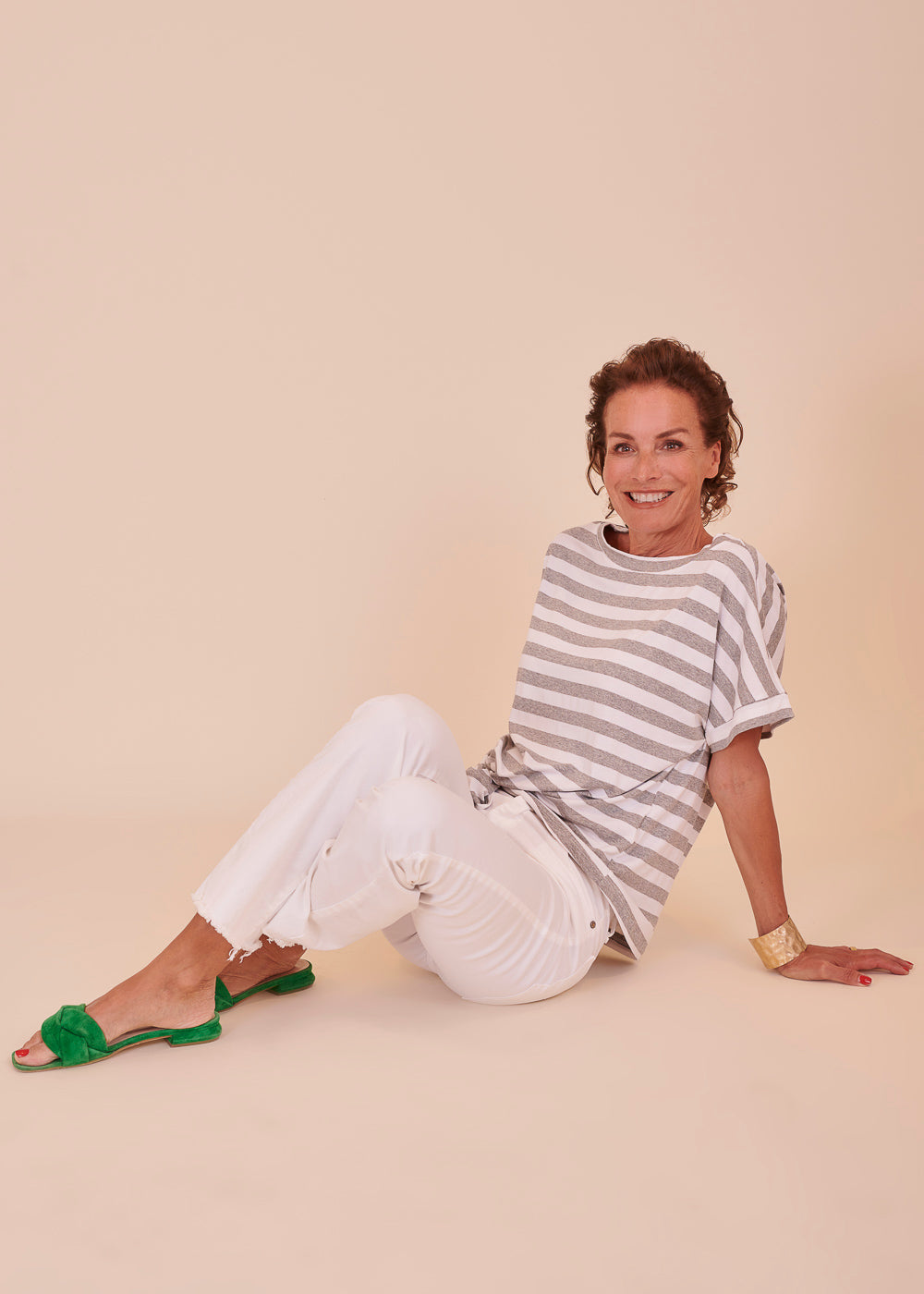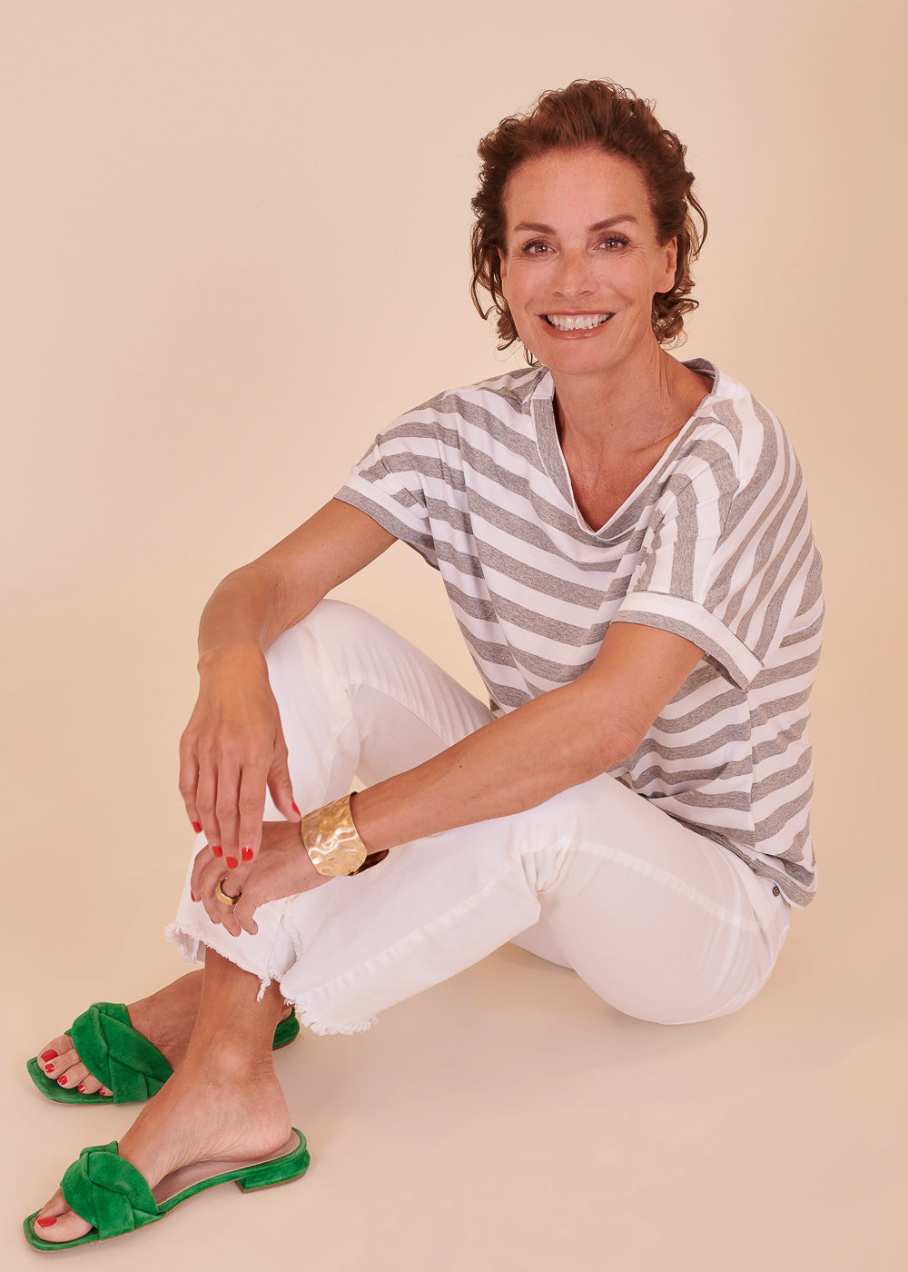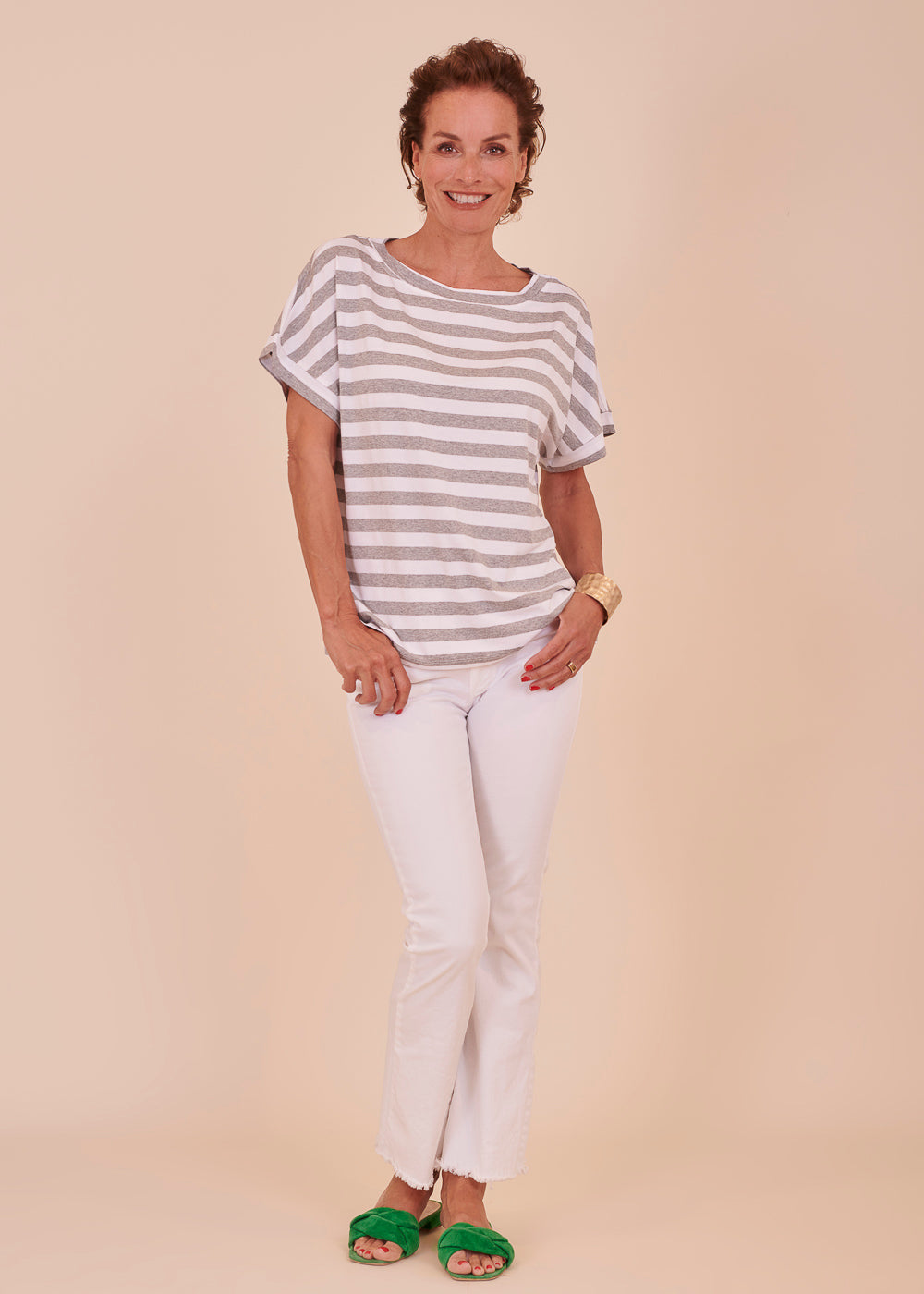 T-Shirt aus weicher Baumwolle mit einem Rundausschnitt und überschnittenen Schultern.