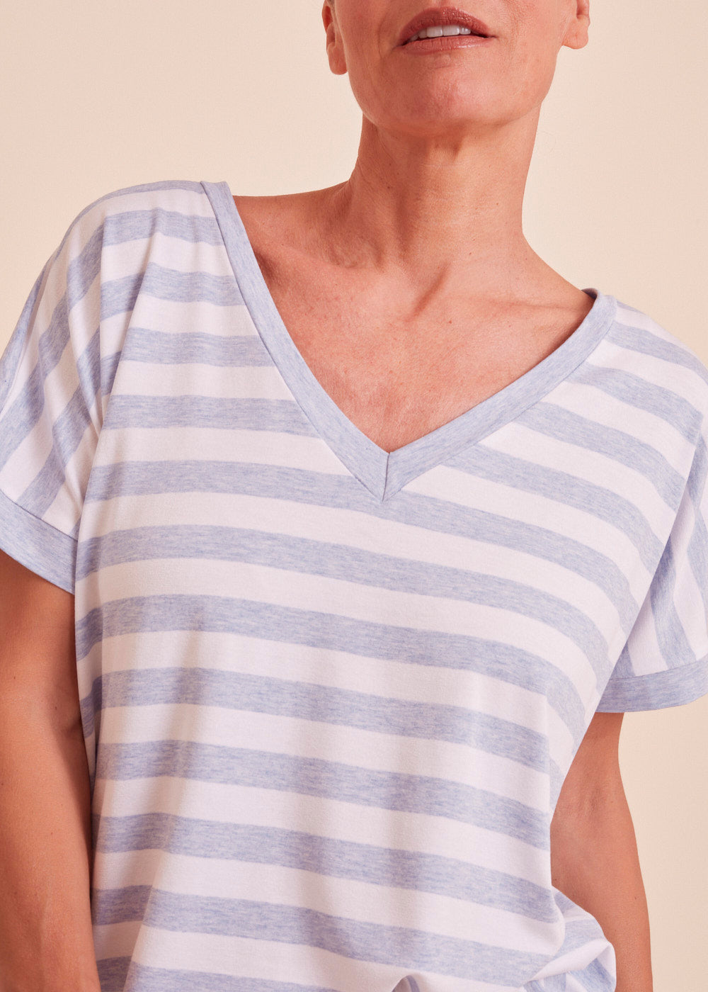 Wir lieben unsere Ringelshirts! Das wunderschön geschnittene Shirt mit V-Ausschnitt, lässt dich Strahlen. Die frischen Farben passen perfekt in den Sommer und lassen sich hervorragend mit weiß formatieren.