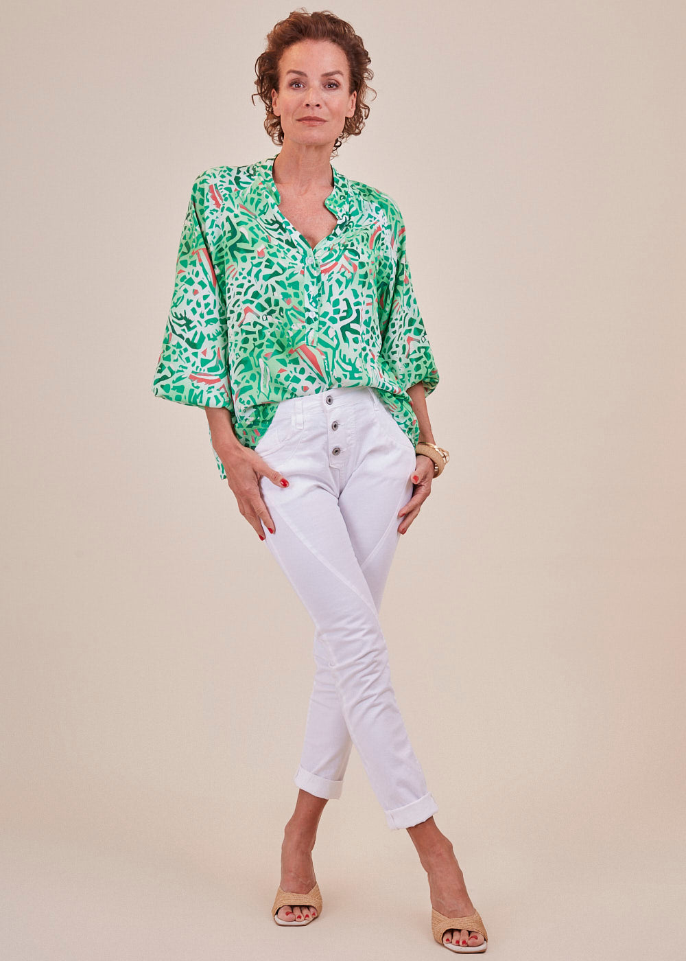 Das Must-Have der Saison ist die Print Bluse. Diese gemusterte Bluse im Hemdkragen Stil ist lässig geschnitten. Die frischen Farben verleihen deinem Look die perfekte Frische. Einfach besonders!