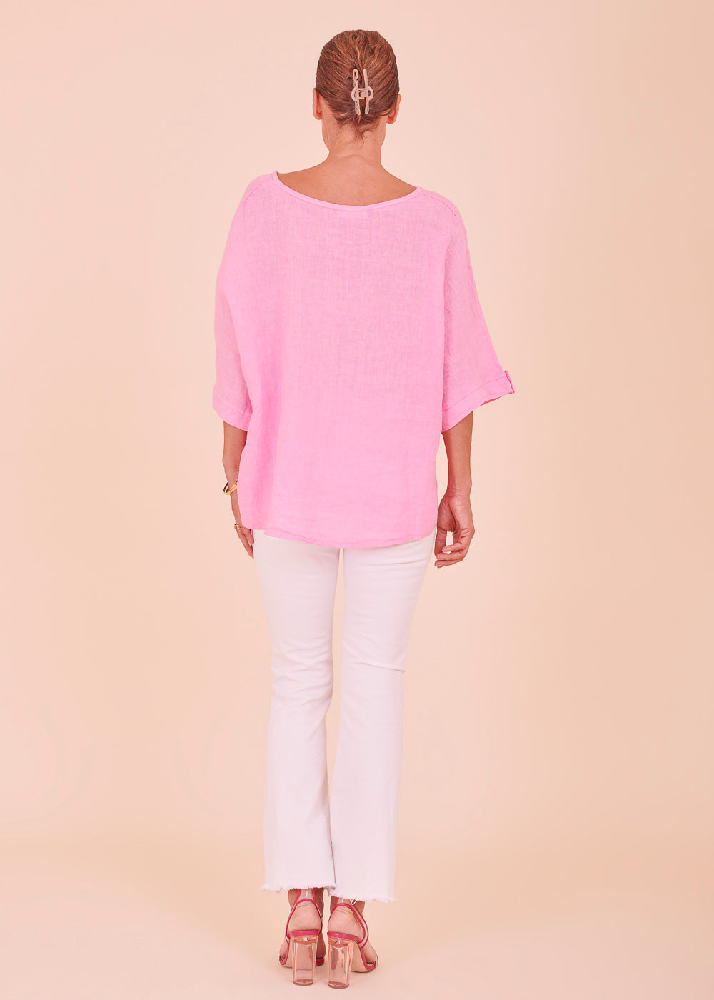 Leinen ist das perfekte Material für die heißen Sommertage. Diese lässig sitzende Leinenbluse mit einem besonders schönen V-Ausschnitt ist ein absoluter Alleskönner. Das luftig leichte Material schmiegt sich angenehm an deinem Körper an.