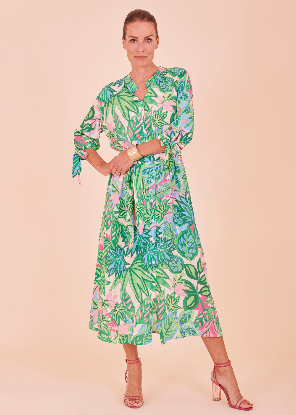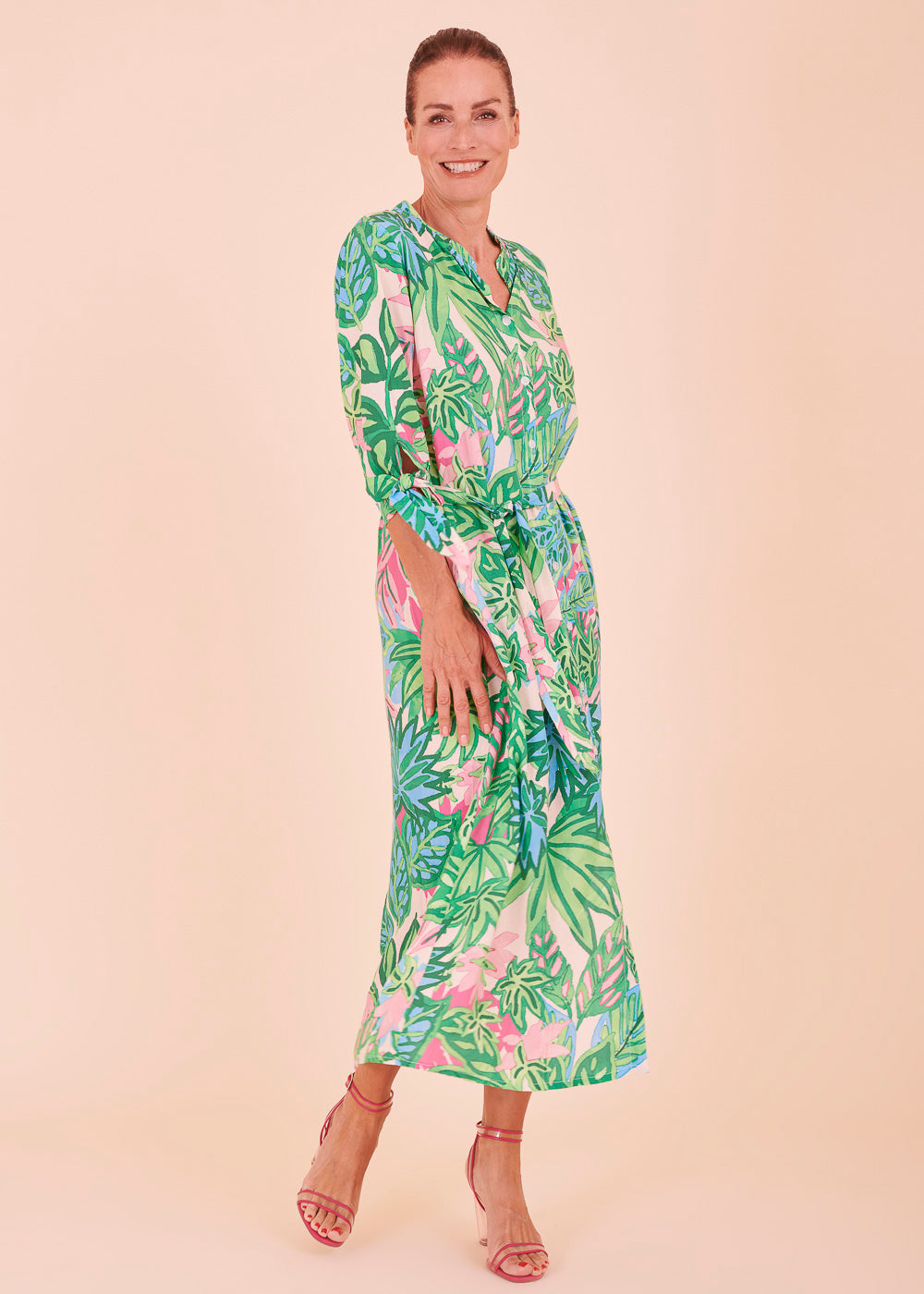 Dein neuer Sommerlook. Das wunderschöne und farbenfrohe Print des Kleides lässt sich hervorragend mit einem kleinen Absatzschuh kombinieren. Durch seinen besonders lässigen Schnitt sitzt dieses Kleid besonders gemütlich und engt dich in deinem Alltag nicht ein. Auf der nächsten Gartenparty deiner Freundin, wirst du mit dieser besonderen Kleid, zum absoluten Blickfang.