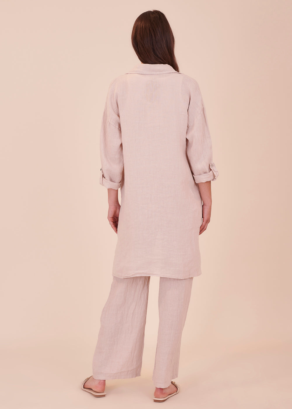 Der Sommer kann kommen! Diese länger geschnittene Hemdbluse mit legerer Passform aus einem Leinen Material ist der perfekte Begleiter für die heißen Sommertage. Das Leinenmaterial kühlt angenehm deine Haut Der klassische Blusenkragen und die Knopfleiste verleihen der Bluse einen zeitlosen Look. Mit seitlichen Schlitzen. Ein zeitloser Begleiter!