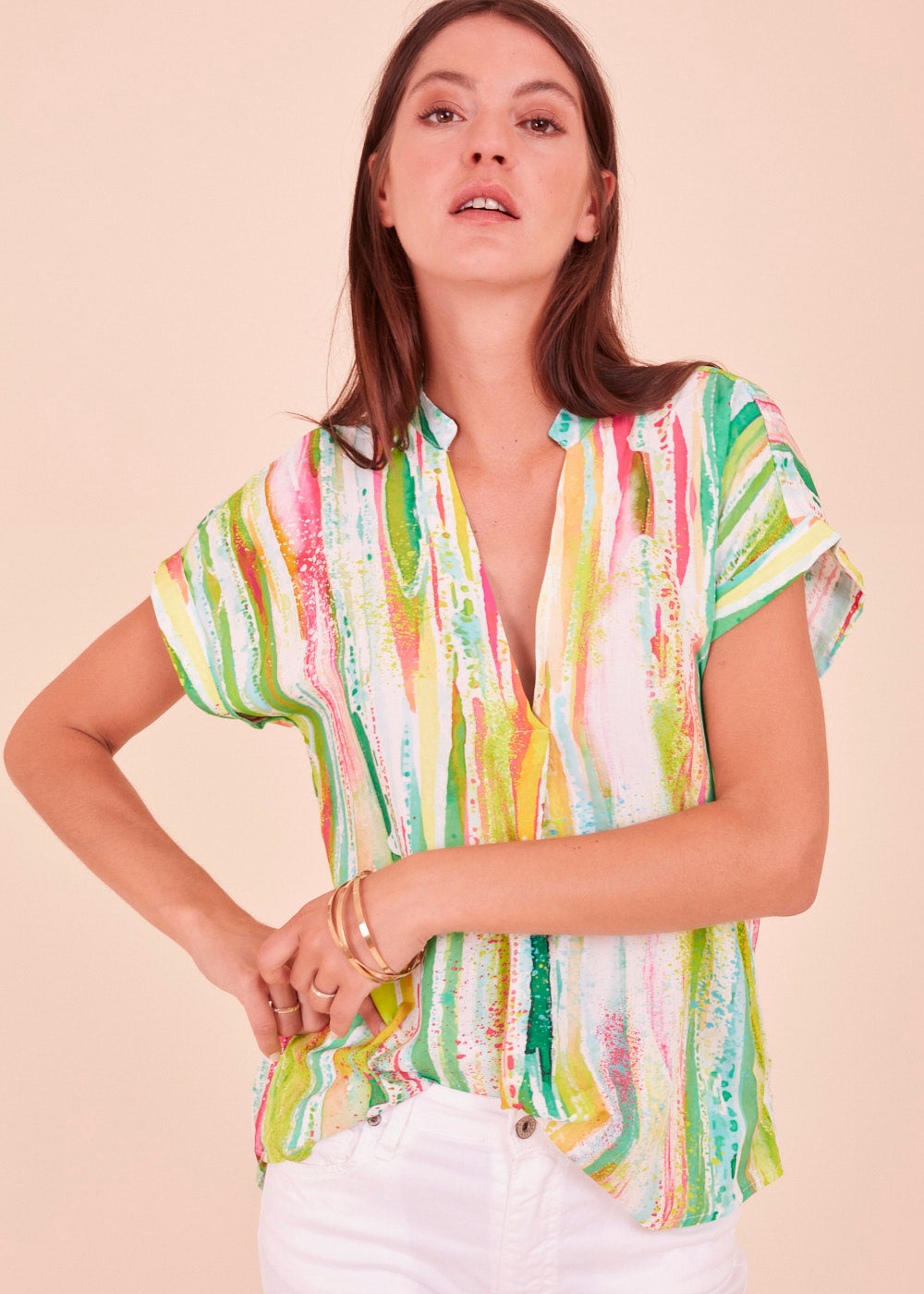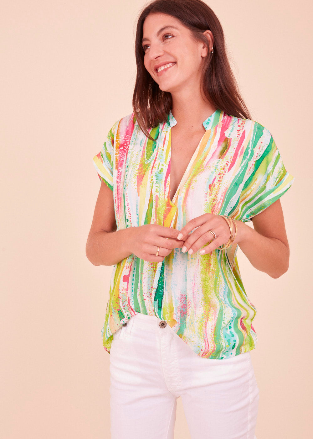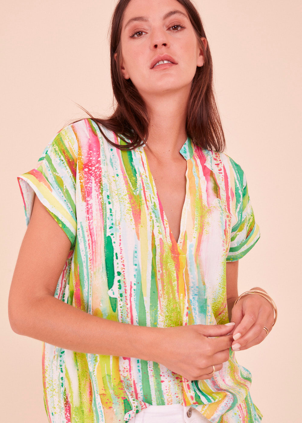 Tauche ein in die zauberhafte Welt der Tunika Bluse mit kurzen Armen im faszinierenden Print. Du wirst die luftige Leichtigkeit auf deiner Haut spüren und dich von den lebendigen Farben verzaubern lassen. In dieser Tunika wirst du dich strahlend schön und selbstbewusst fühlen - bereit, die Welt mit deiner einzigartigen Ausstrahlung zu erobern. Ergänze deinen Stil mit dieser bezaubernden Tunika Bluse und lass deine Emotionen frei erblühen!